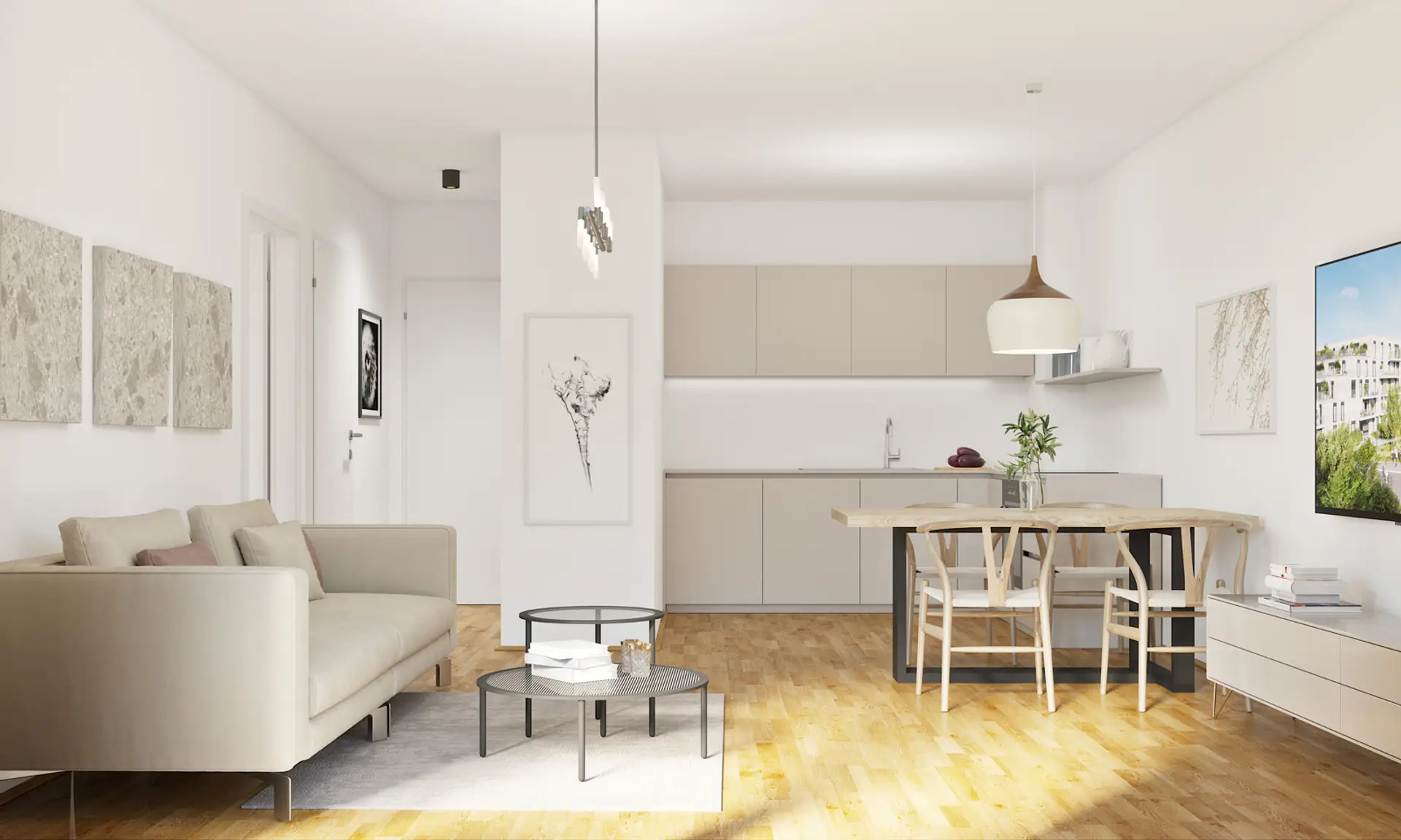 - In Wiens fortschrittlichstem Stadtentwicklungsgebiet mit Mobility-Services wie Ladestationen für E-Autos und E-Bikes, Carsharing oder Leihräder