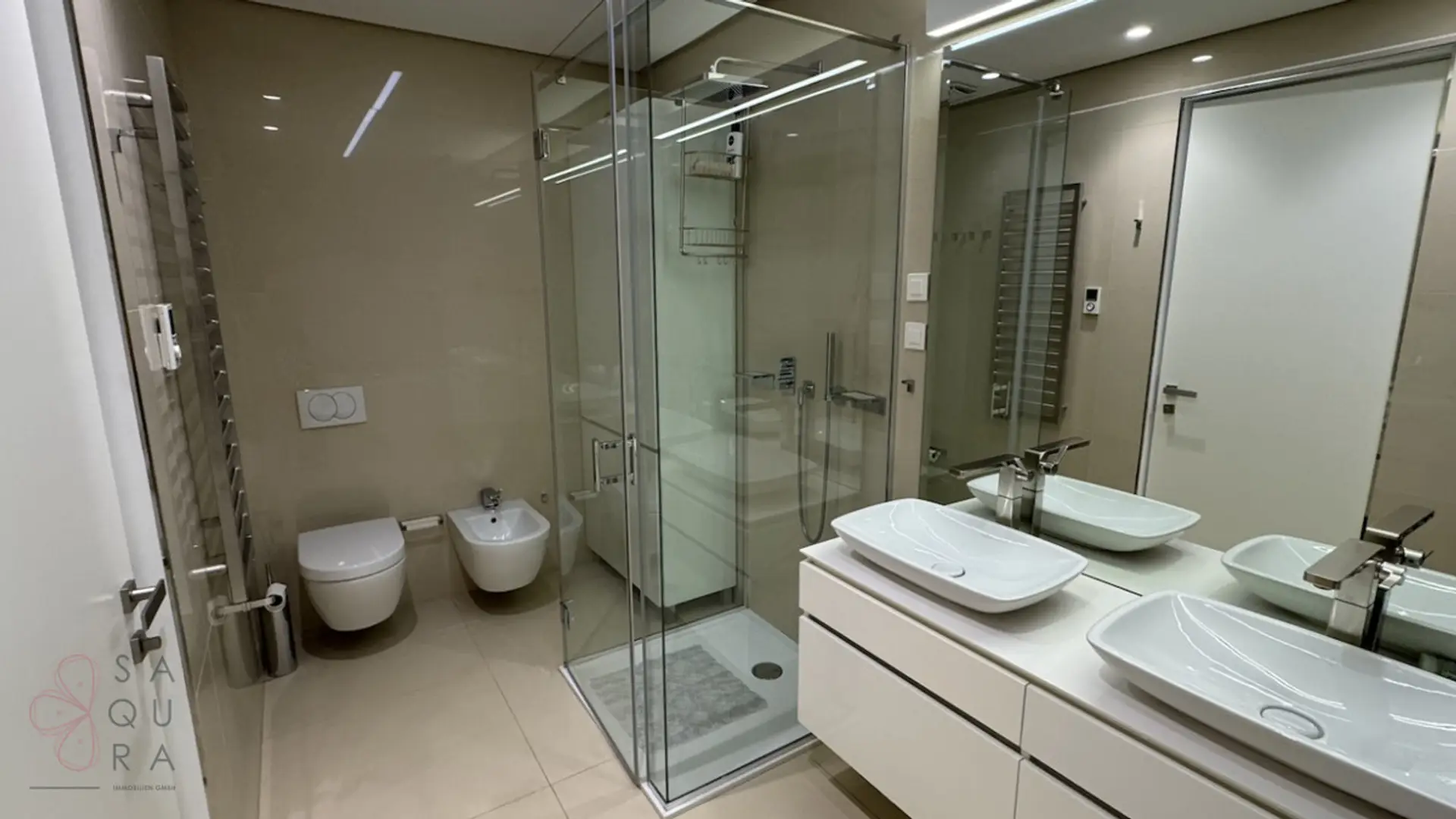 Elegante Badezimmer mit Villeroy & Boch und Dornbracht-Armaturen.