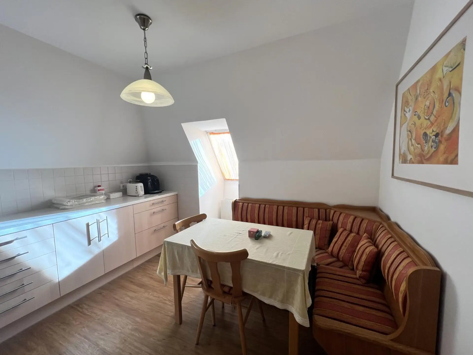 * charmante Einbauküche mit gemütlicher Sitzecke