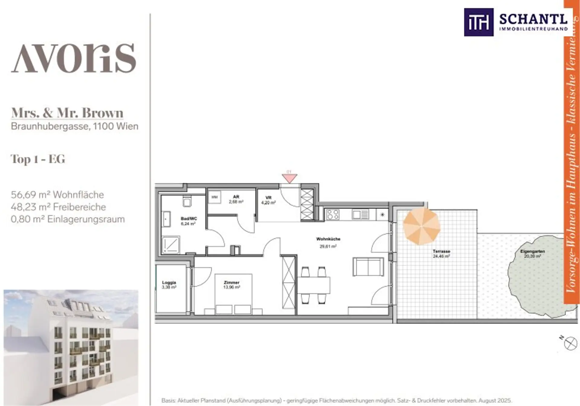 Hier in der Braunhubergasse entstehen im Straßentrakt 20 unwiderstehliche Wohnungen mit Größen zwischen 37m² und 97m², optimalen und perfekt konzipierten Grundrissen, attraktiven Freiflächen wie Loggien, Balkone, Terrassen und Gärten sowie 10 gewerbliche Apartments im Hoftrakt, mit Größen zwischen 34m² und 42m², welche ebenfalls über traumhafte Gärten verfügen.