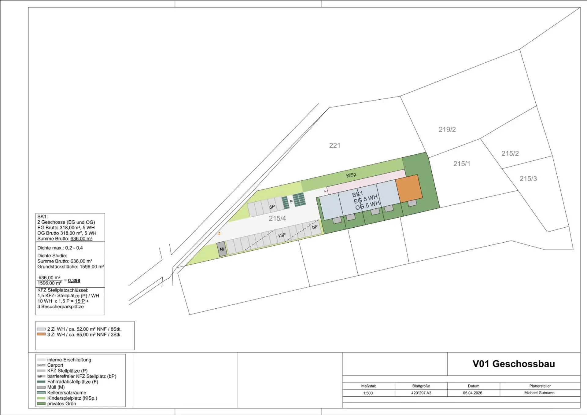 Derzeit gilt für das Grundstück eine Bebauungsdichte von 0,2 – 0,4 mit einer Widmung WA ( Wohnen Allgemein).