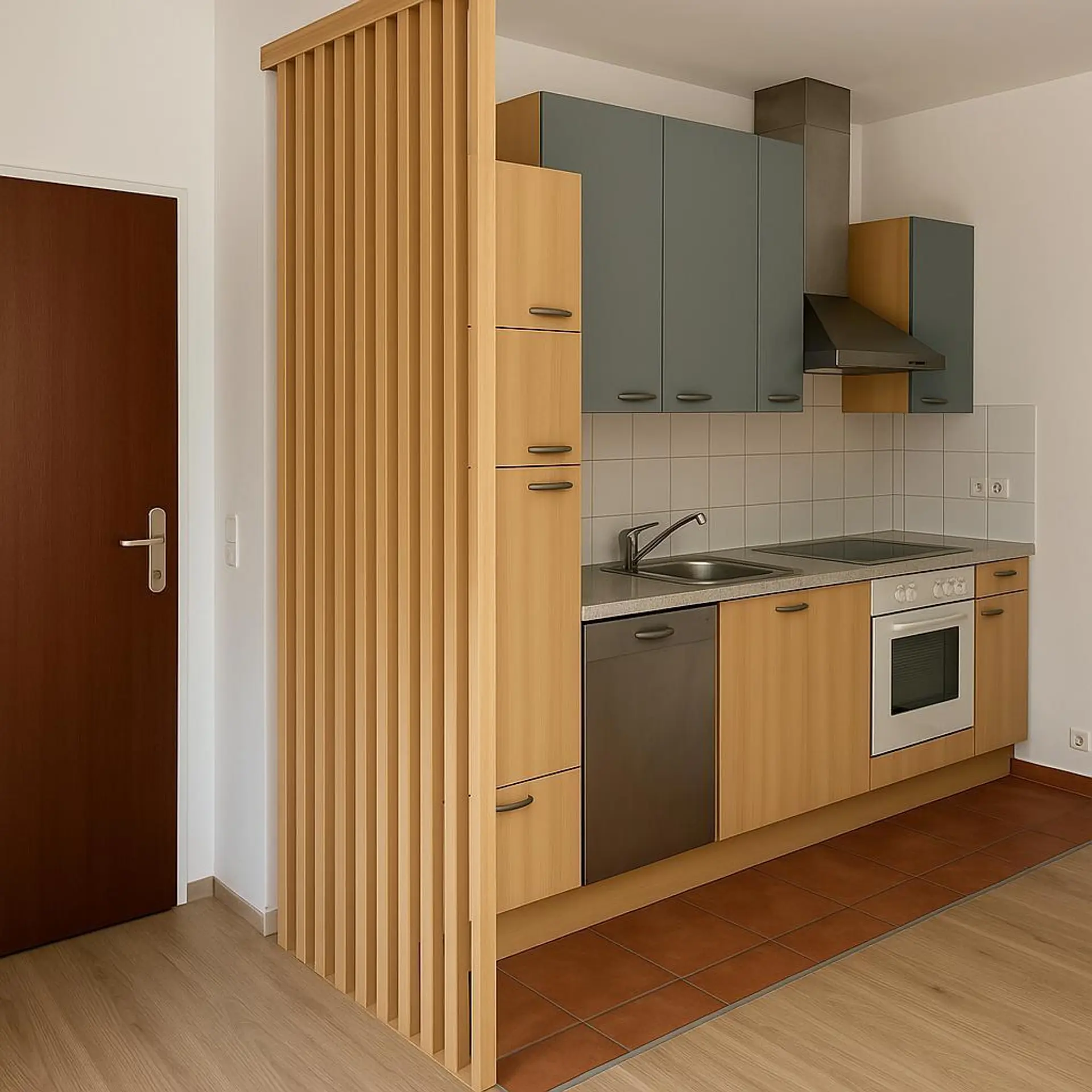 Ein Raumtrenner wird noch angefertigt - ungefähr wie auf der Fotomontage ersichtlich.
