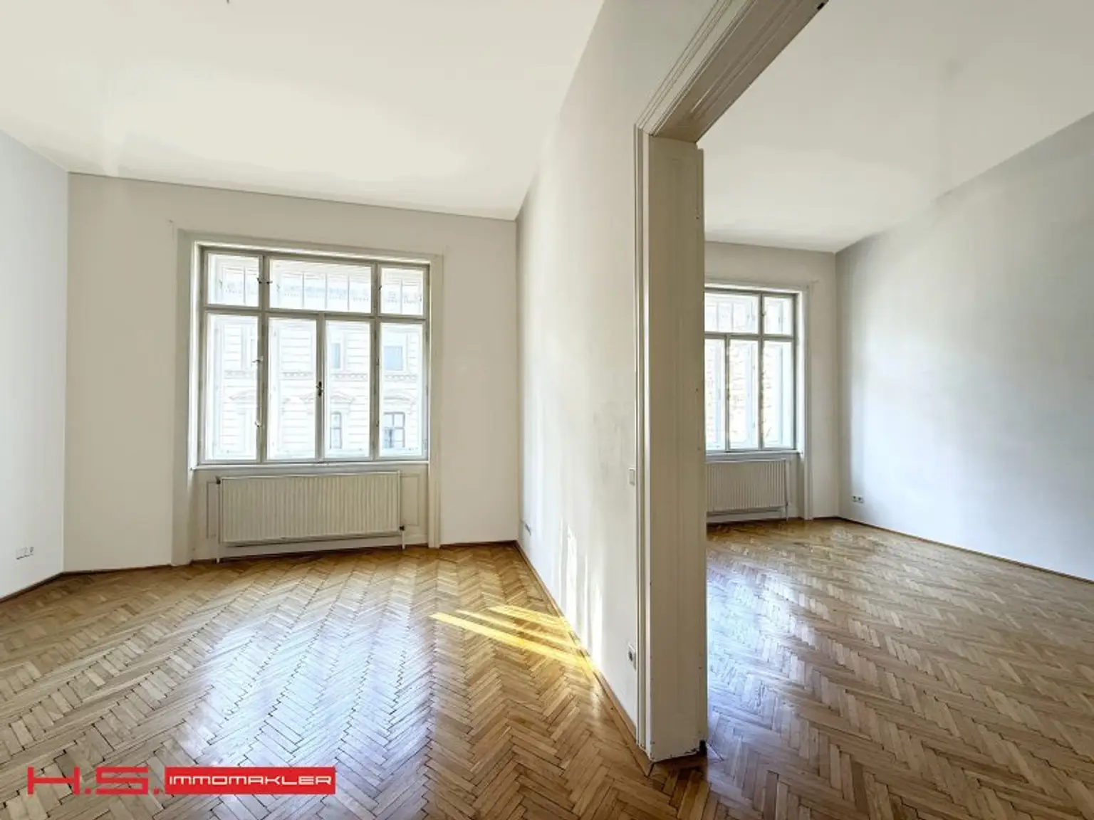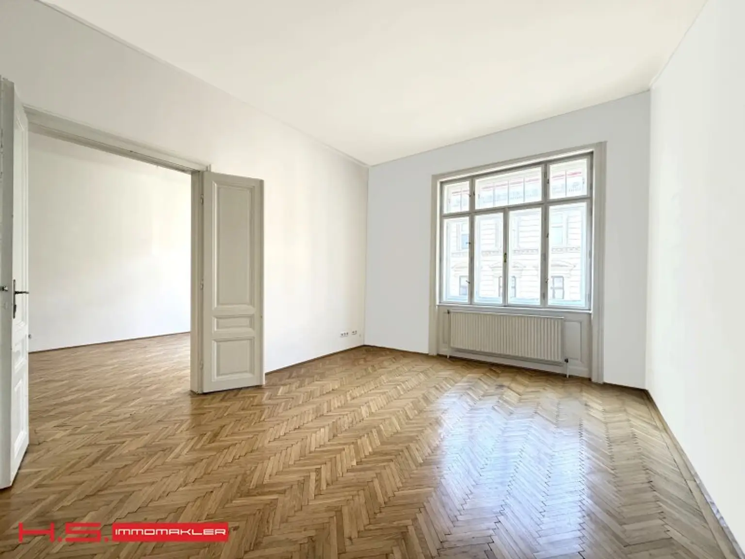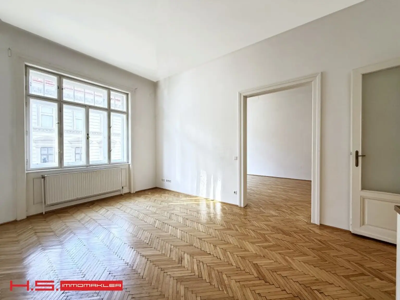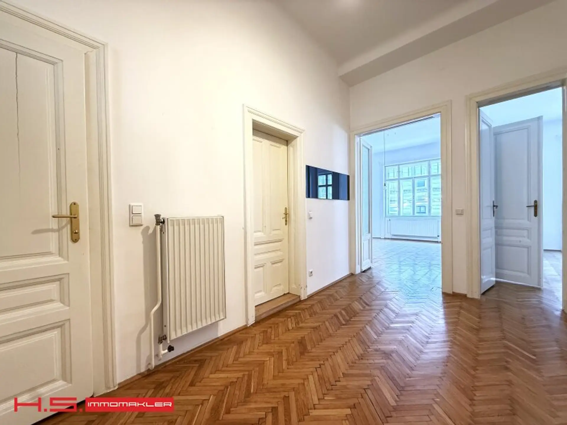 - Herrliche Parketten, durchgehende Flügeltüren und eine elegante Zimmerflucht runden das erstklassige Gesamtbild ab.