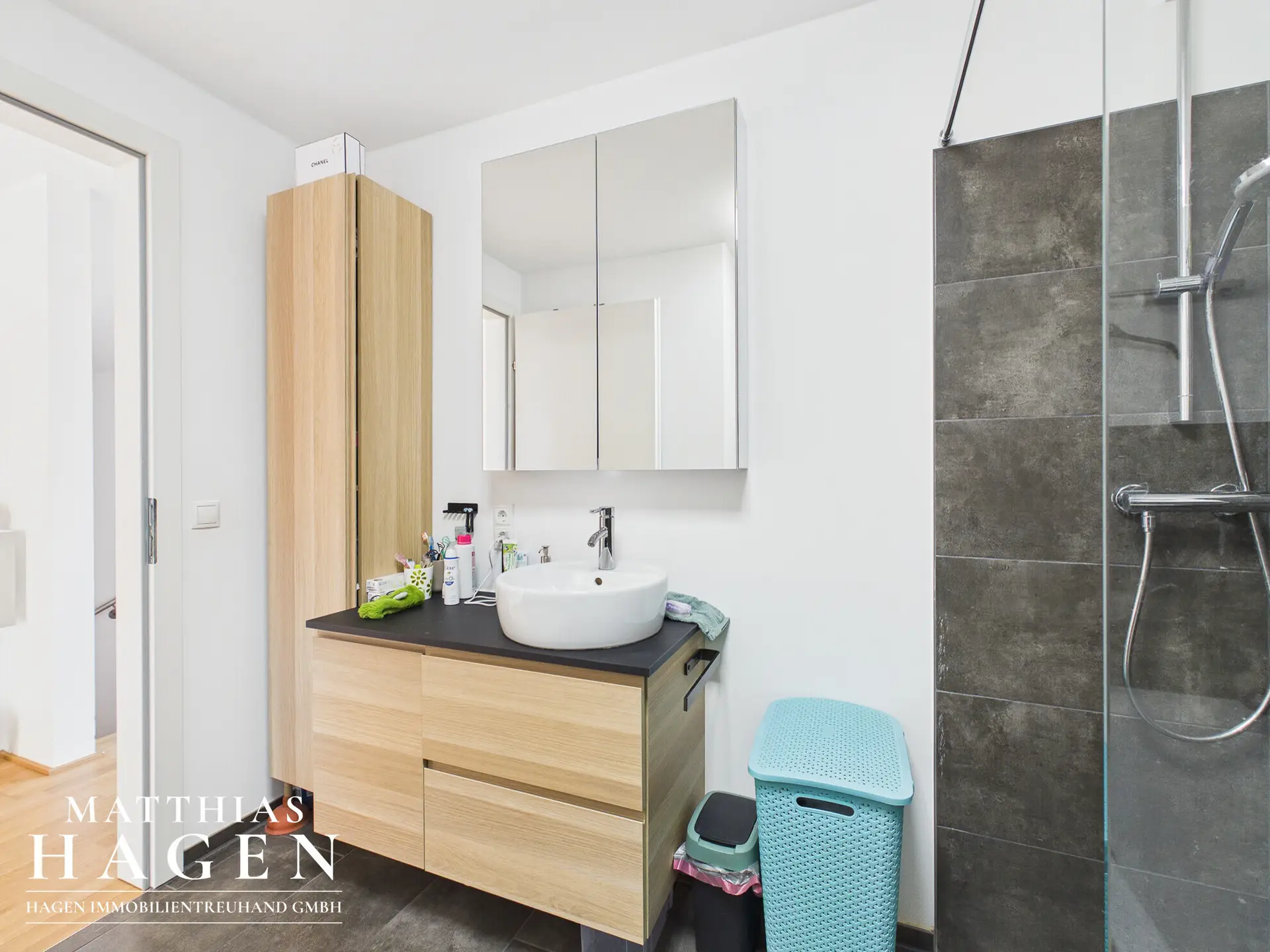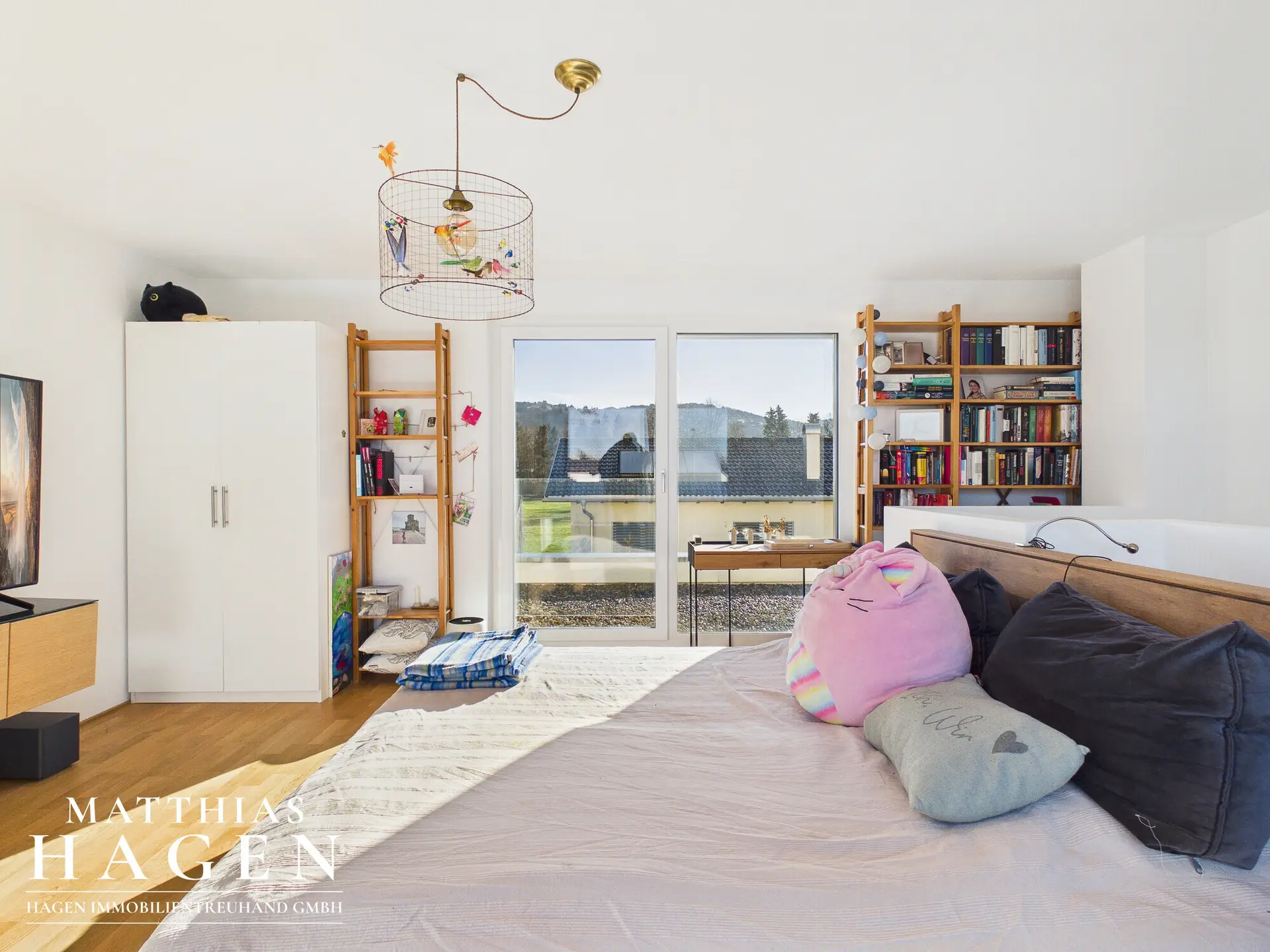 Im Obergeschoss erwarten Sie drei gemütliche Schlafzimmer und ein Badezimmer mit Badewanne, Dusche und WC – ideal für Familien. Das Dachgeschoss beherbergt ein großzügiges Atelier mit Zugang zur Dachterrasse, von der Sie den Ausblick auf die Umgebung genießen können.