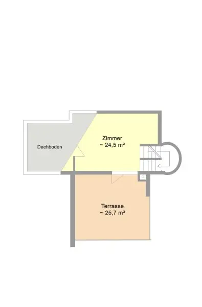 Im Dachgeschoß steht noch ein ca. 25 m² großes Zimmer zur Verfügung, hinter dem sich noch ein großzügiger Abstellraum befindet. Von der Dachterrasse bietet sich ein traumhafter Blick in die Umgebung.
