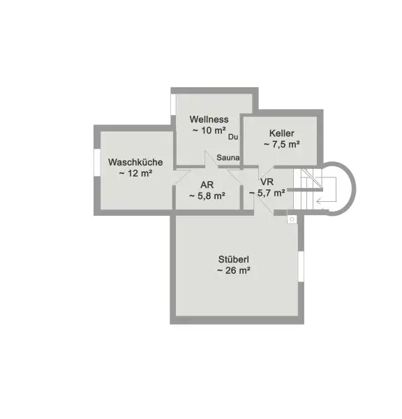 Das Haus ist vollunterkellert, hier gibt es noch ein großzügiges Kellerstüberl, einen Wellness-Bereich mit Sauna, Dusche und Ruheplatz, eine praktische Waschküche und Lagerräume.