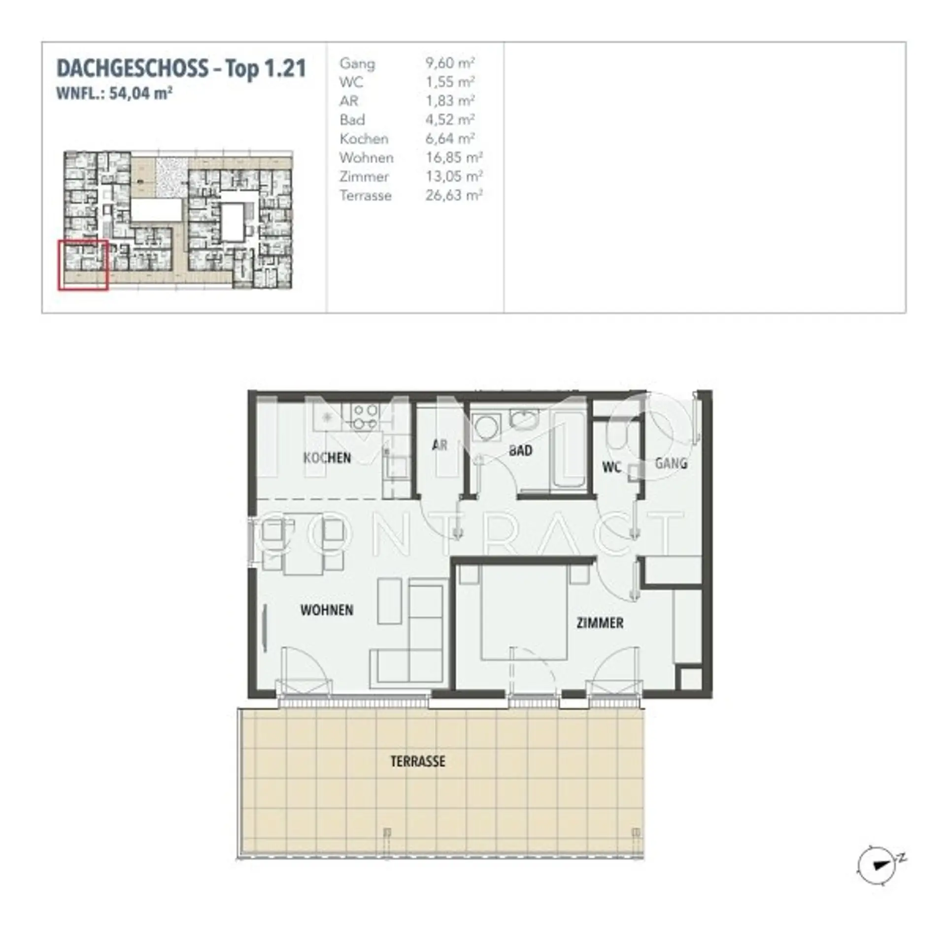 Willkommen in Ihrem neuem zu Hause auf 54,04 Quadratmeter Wohnfläche, verteilt auf 2 Zimmer. Dazu ein praktischer Abstellraum, ein separates WC und eine Terrasse 26,62 Quadratmeter – ideal für Entspannung im Freien. Die helle, und gut durchdachte Raumaufteilung bietet komfortables Wohnen mit einem modernen Lebensgefühl. Perfekt für jeden der gerne nahe an der Natur ist aber die Annehmlichkeiten einer Großstadt schätzt.