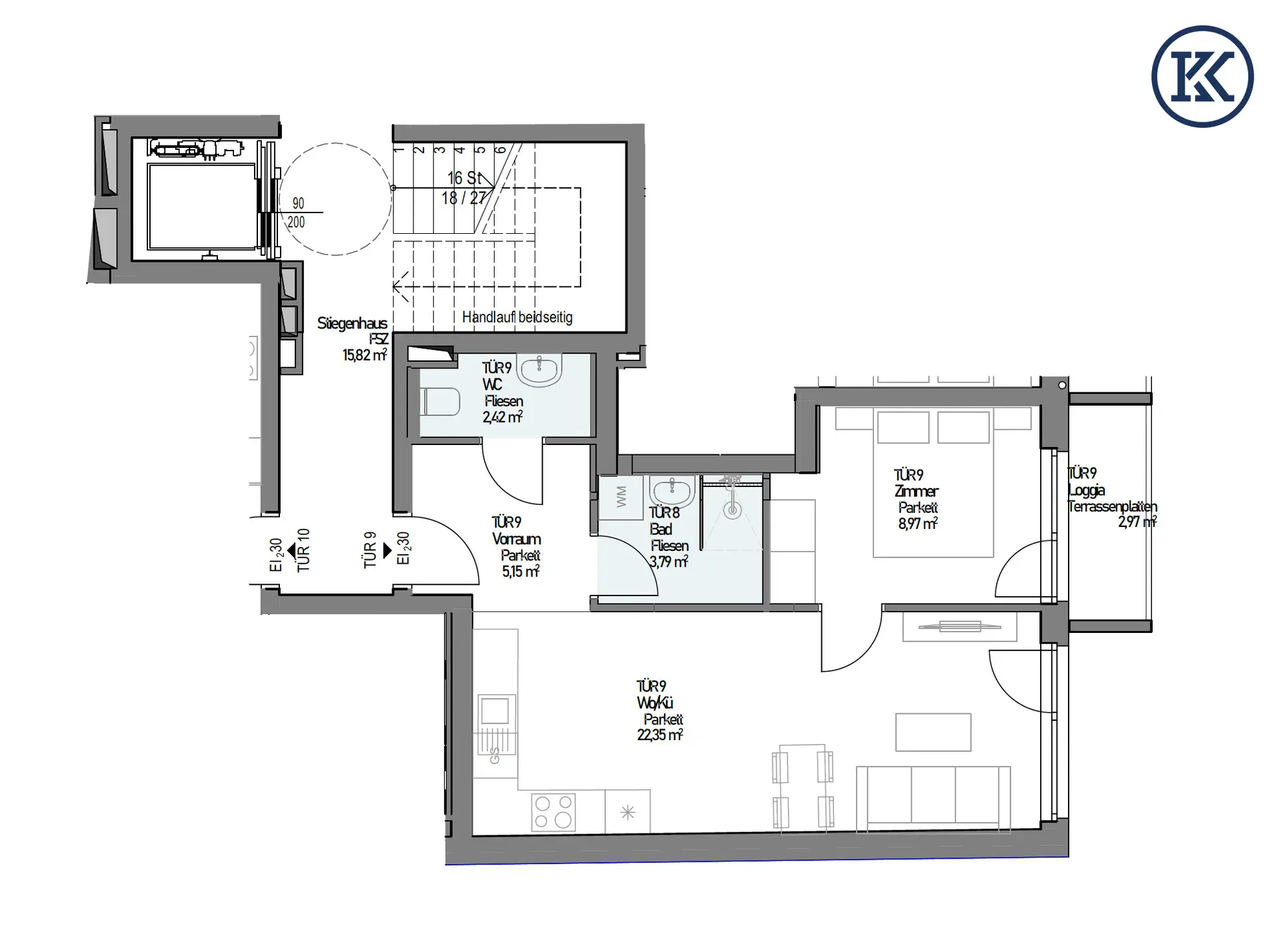Ausstattung: Boden Fahrstuhl Bad Klimaanlage Fahrradraum Fußbodenheizung Loggia