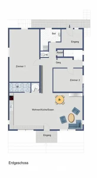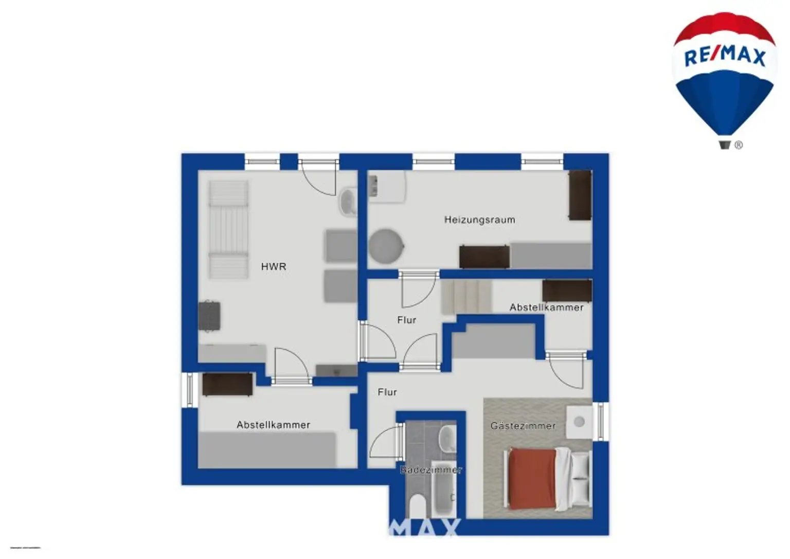 * Separates Gäste-WC, Abstellräume, Technik-/Heizraum