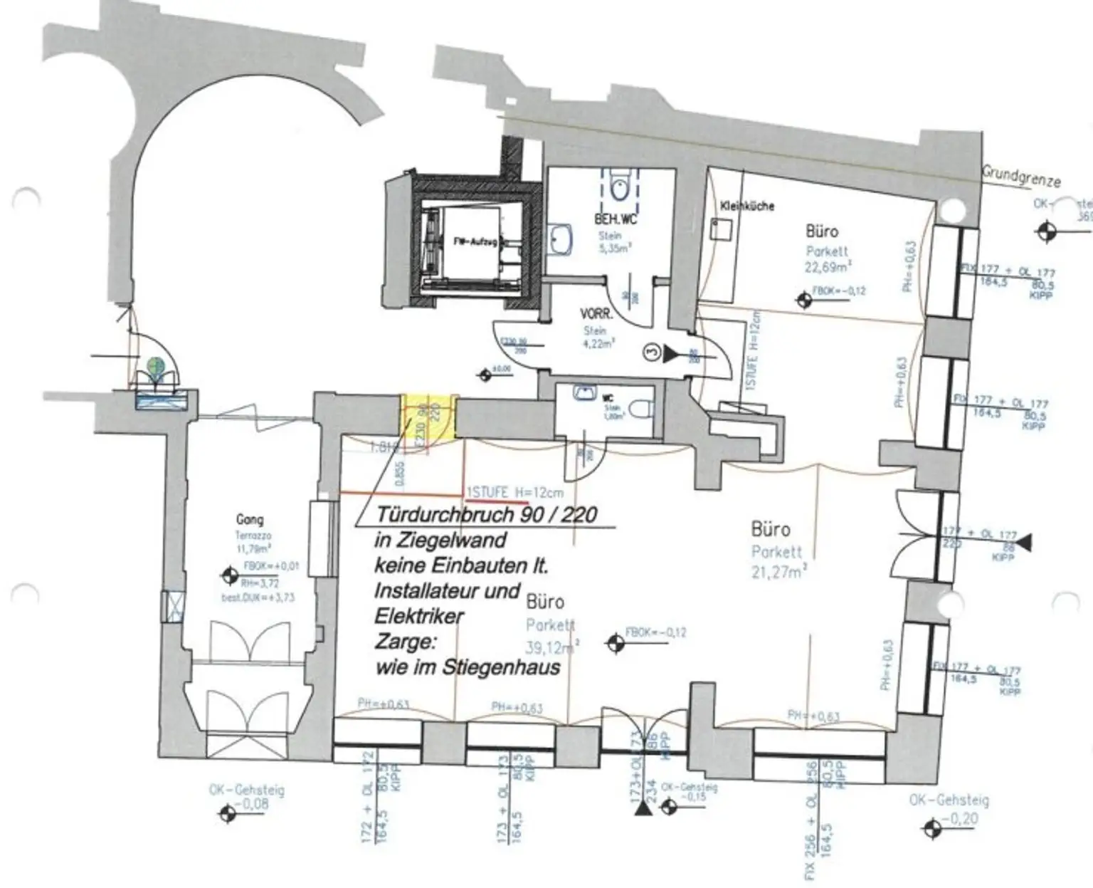* Ausstattung: großes Schaufenster, direkter Straßenzugang, Parkett- & Fliesenböden, Fußbodenheizung, Klimaanlage, 2 WCs