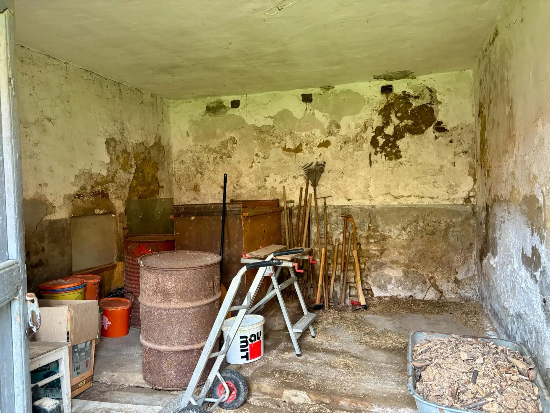 Das Haus und die Nebengebäude sind stark sanierungsbedürftig: geeignet für einen Handwerker, der hier das Potential für die Liegenschaft sieht, oder aber auch für einen kompletten Neubau, das Grundstück wurde erst im September 2025 vermessen.