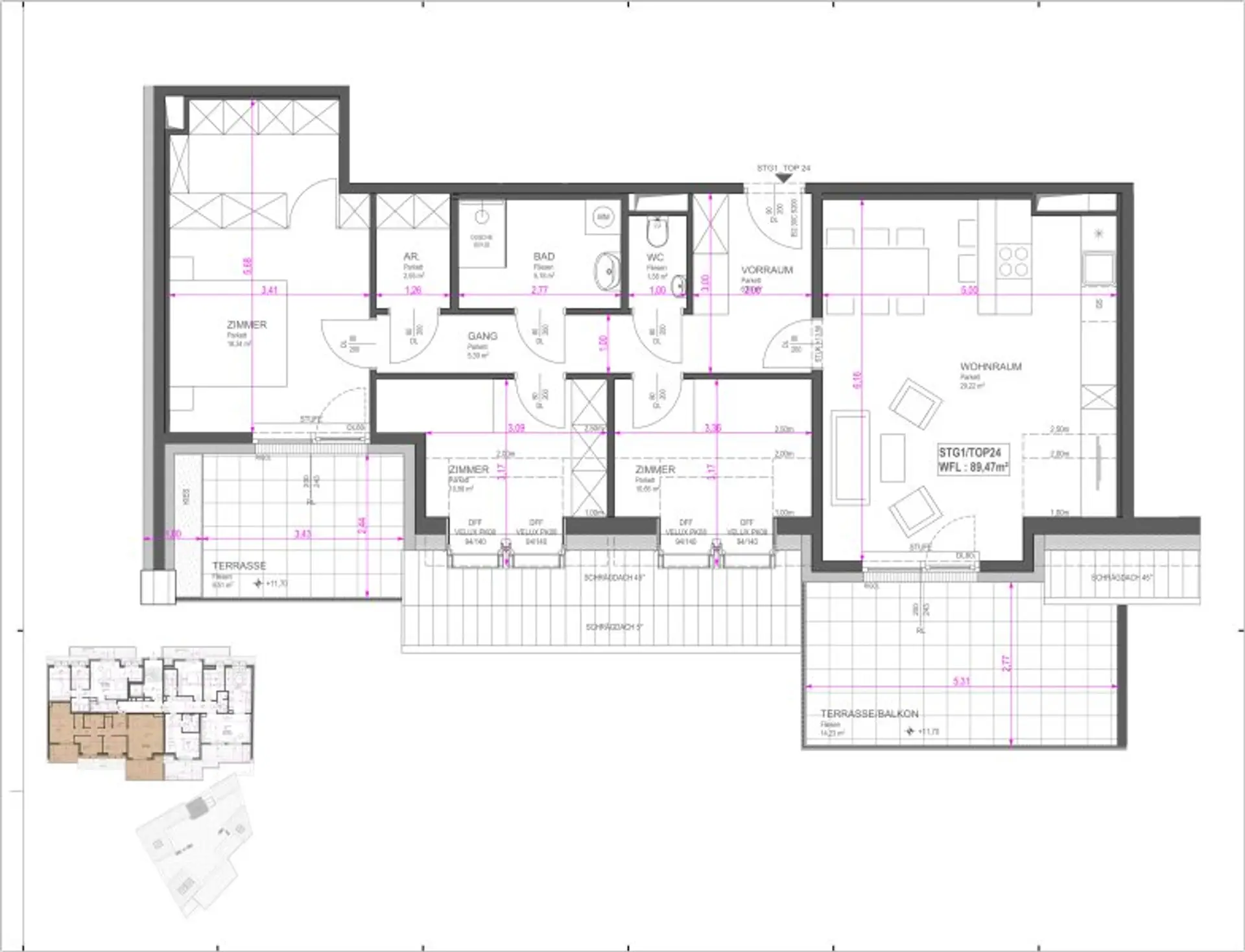 Die Wohnung verfügt über eine Wohnfläche von ca. 89,47qm, einem Balkon mit ca. 14,23qm, einer Terrasse mit ca. 9,51qm und gliedert sich in folgende Raumaufteilung: