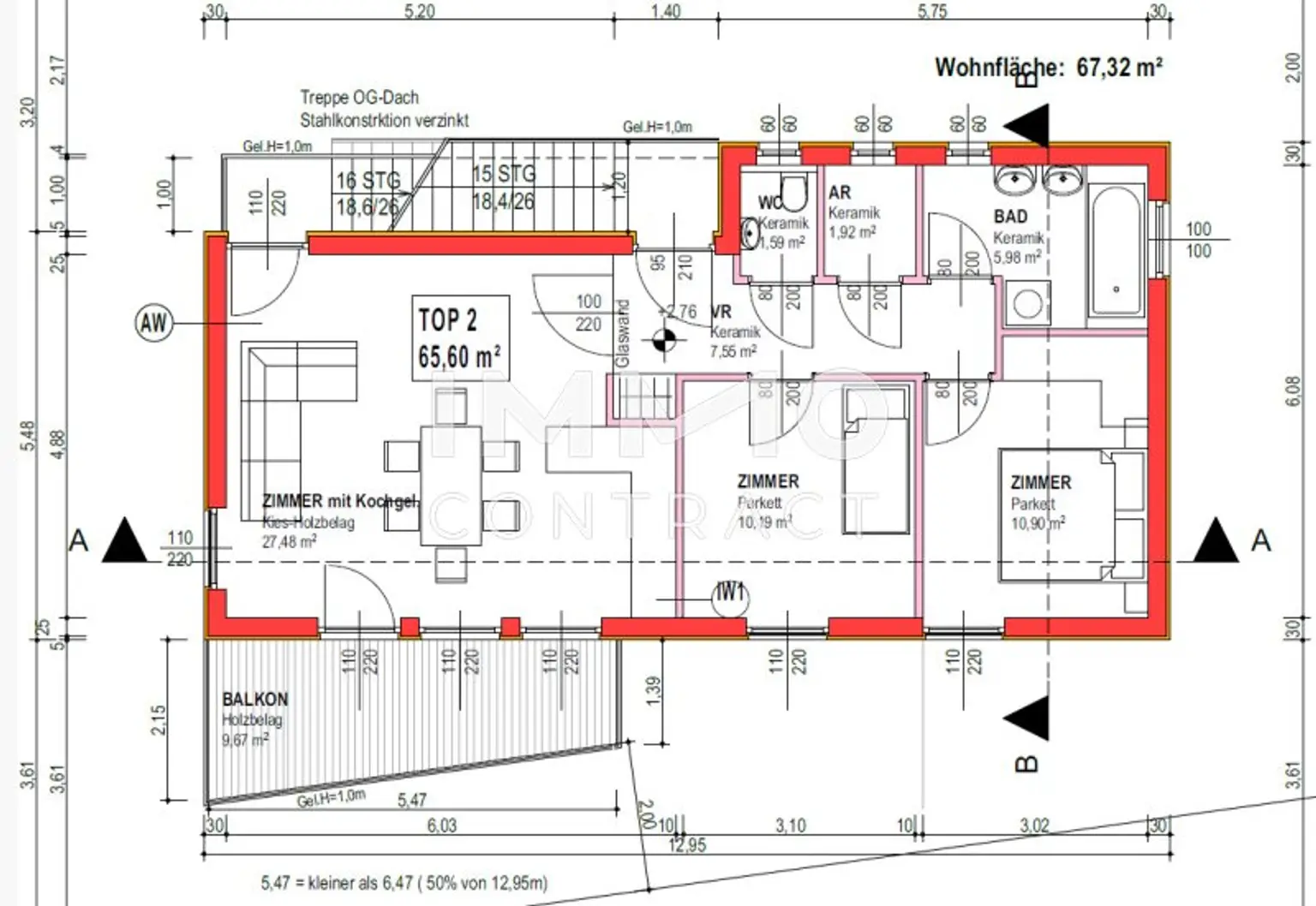 • Dachterrasse mit ca 65 m² – über außenliegenden Treppenaufgang erreichbar