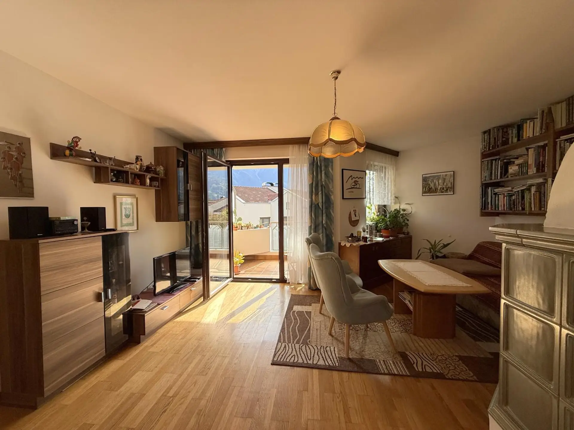 - großes Wohnzimmer mit schöner Fensterfront zur großen Südloggia und einem Kachelofen