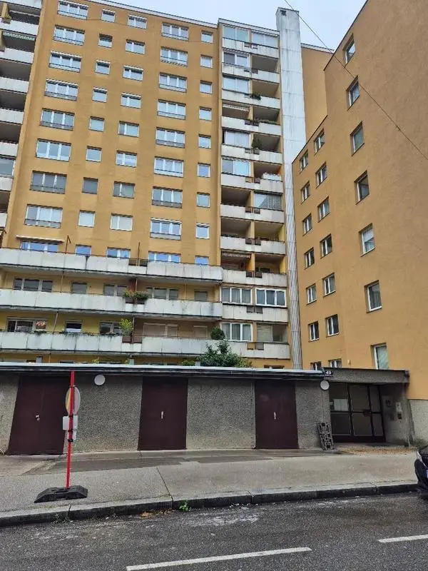 Diese 45 m² große Wohnung, Baujahr ca. 1970, bietet ein Zimmer, eine Küche, Bad / WC und einen Abstellraum sowie Loggia und Terrasse.