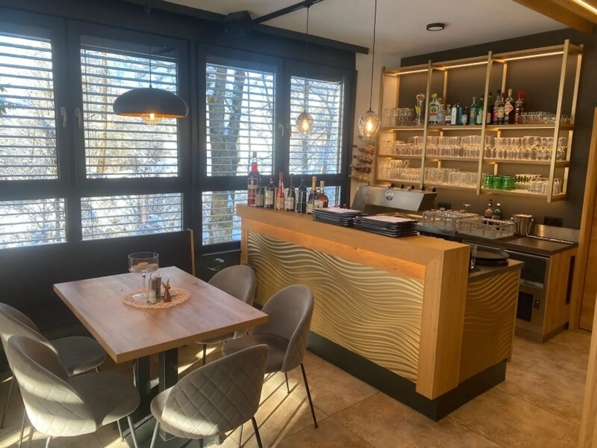 Das Restaurant bietet 60 Sitzplätze im Innenbereich sowie 80 Sitzplätze auf der großzügigen Terrasse mit direktem Blick auf die Gail.