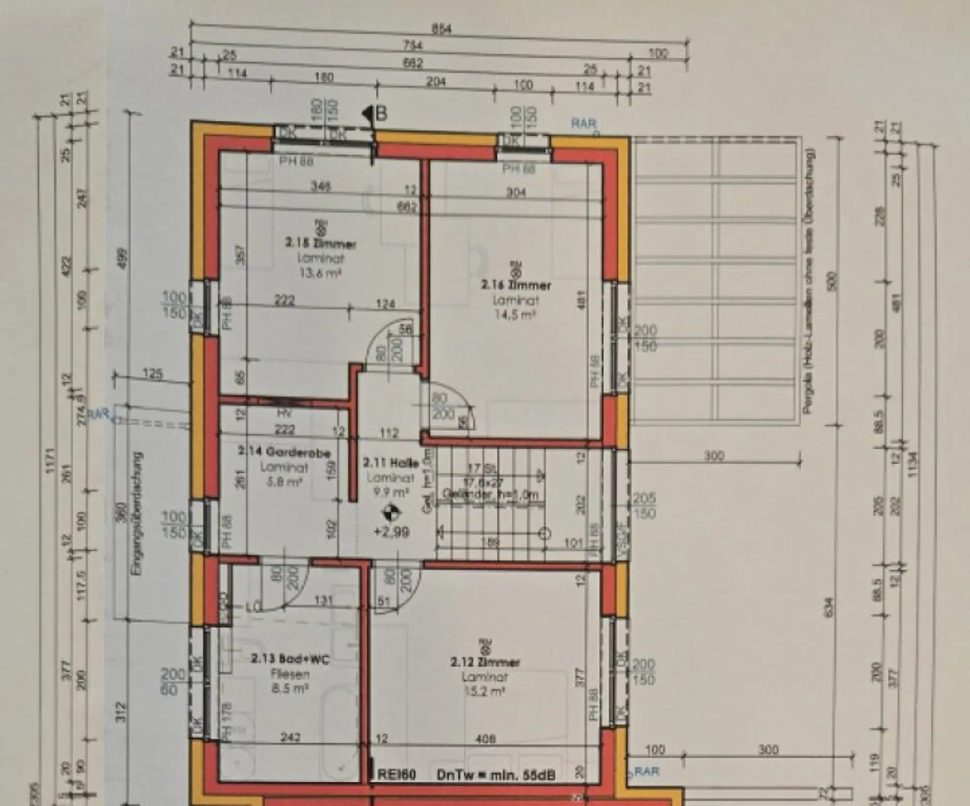 Das Obergeschoß besticht durch 3 Zimmer (Schlafzimmer, Kinderzimmer, Büro, Gästezimmer,...), einen Bad mit WC sowie einen Schrankraum.