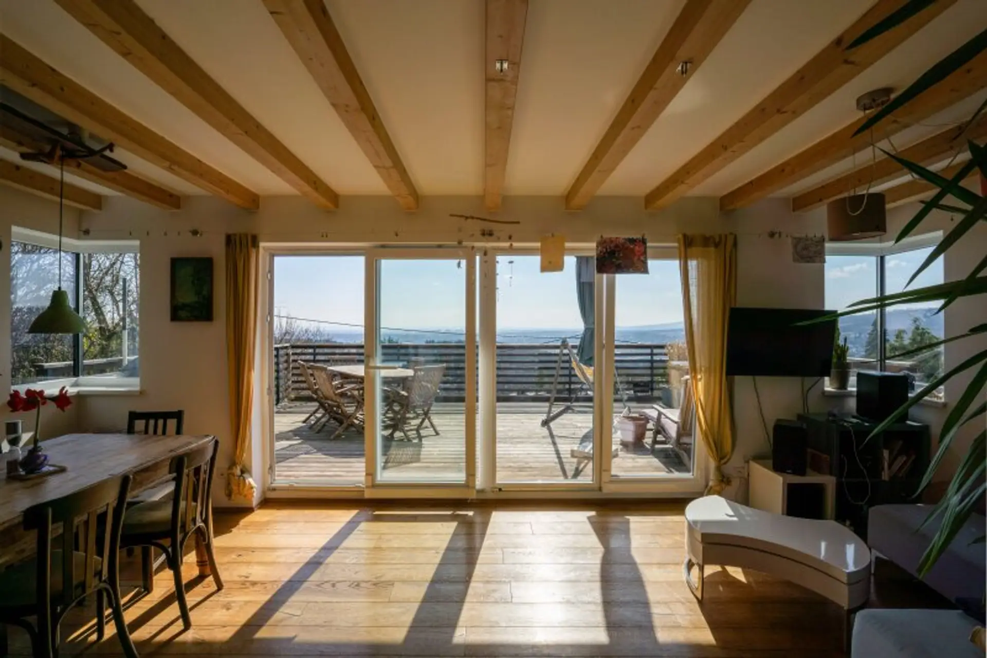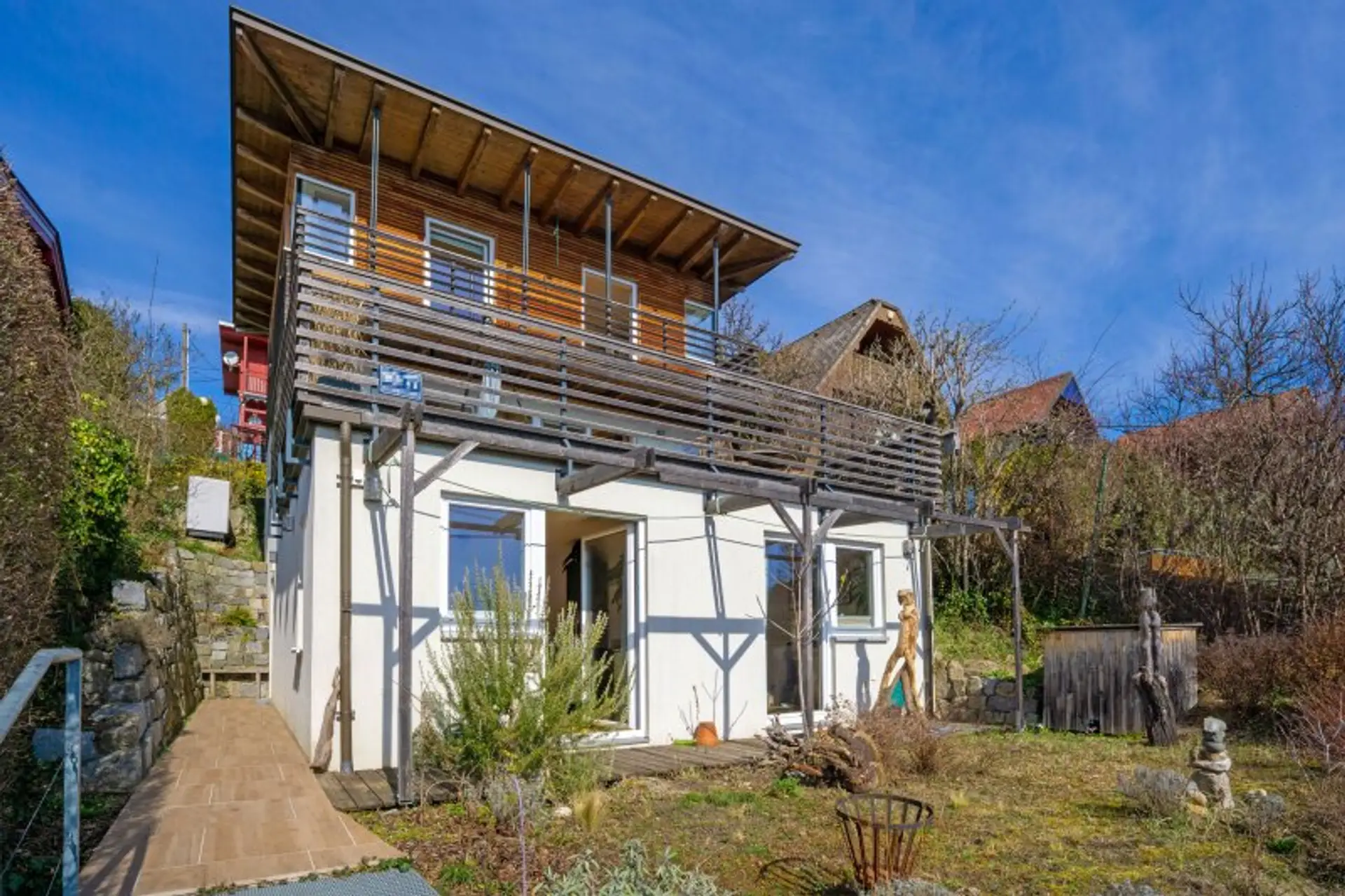 Das 2015 errichtete Haus vereint moderne Technik, nachhaltige Bauweise und hohen Wohnkomfort. Auf rund 130 m² Wohnfläche über drei Ebenen bietet es lichtdurchflutete Räume, eine großzügige Terrasse sowie einen Balkon – beide mit unverbaubarem Panoramablick.