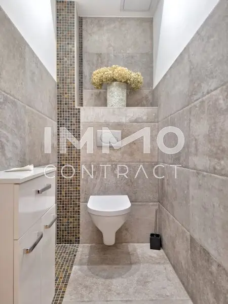 Badezimmer: Im Erdgeschoss befindet sich ein Badezimmer mit Whirlpool, Dusche und WC – ein Ort der Entspannung. Zudem gibt es ein separates WC für zusätzliche Bequemlichkeit.