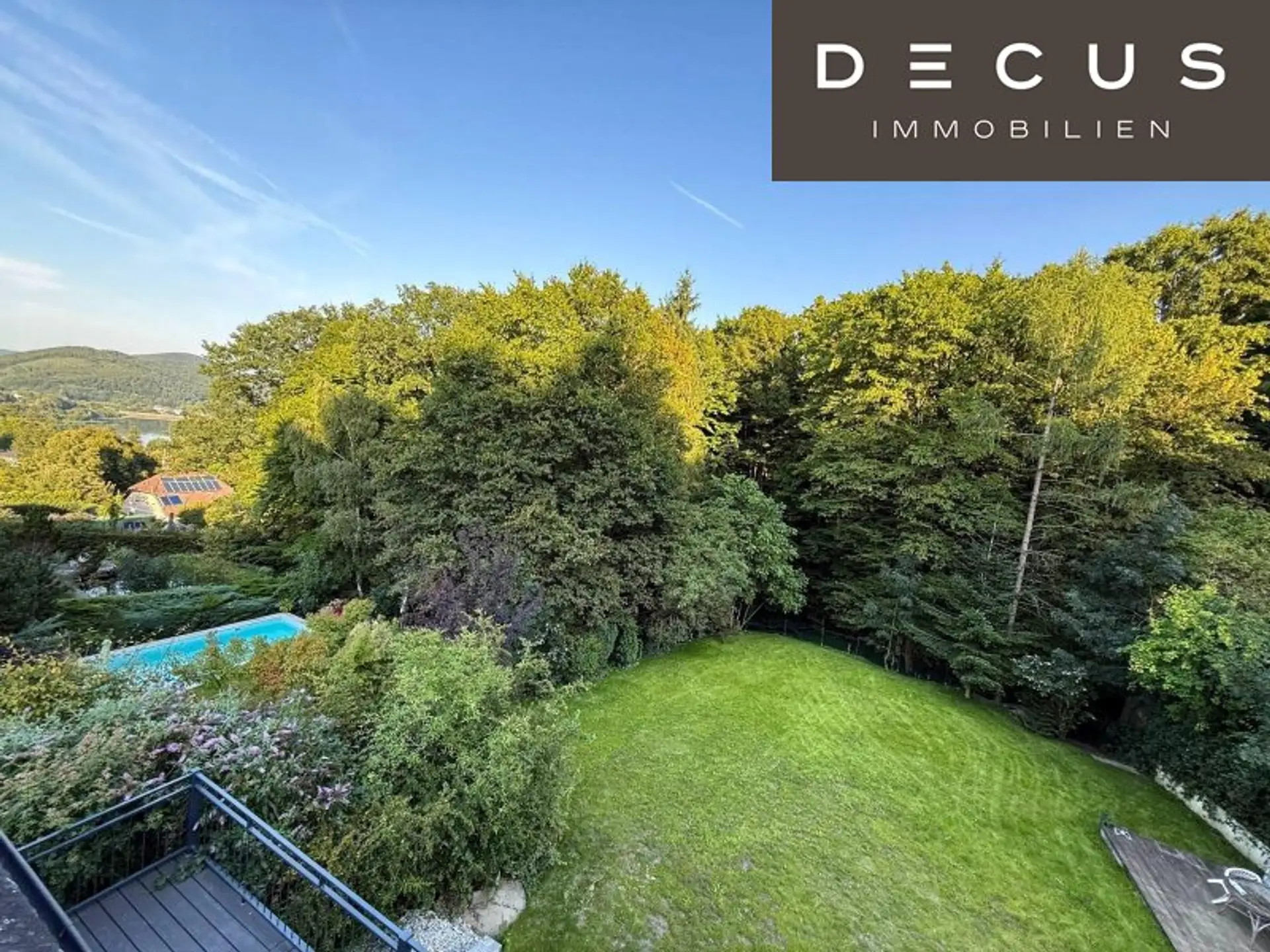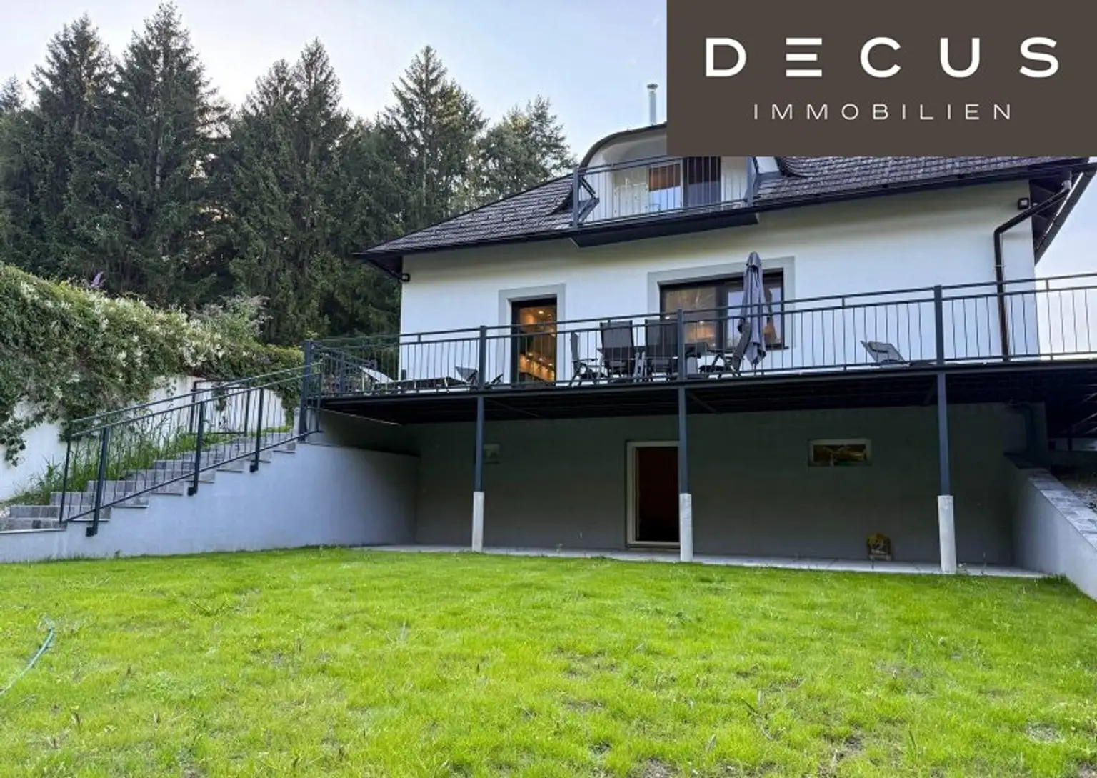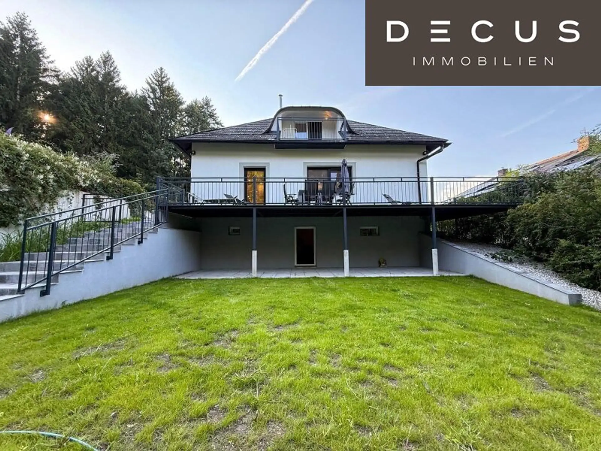 Von hier aus schweift der Blick über den eigenen Garten bis hinein in die dichten Baumkronen des Wienerwaldes. Keine unmittelbaren Nachbarn, keine störenden Einblicke – nur Grün in all seinen Facetten.