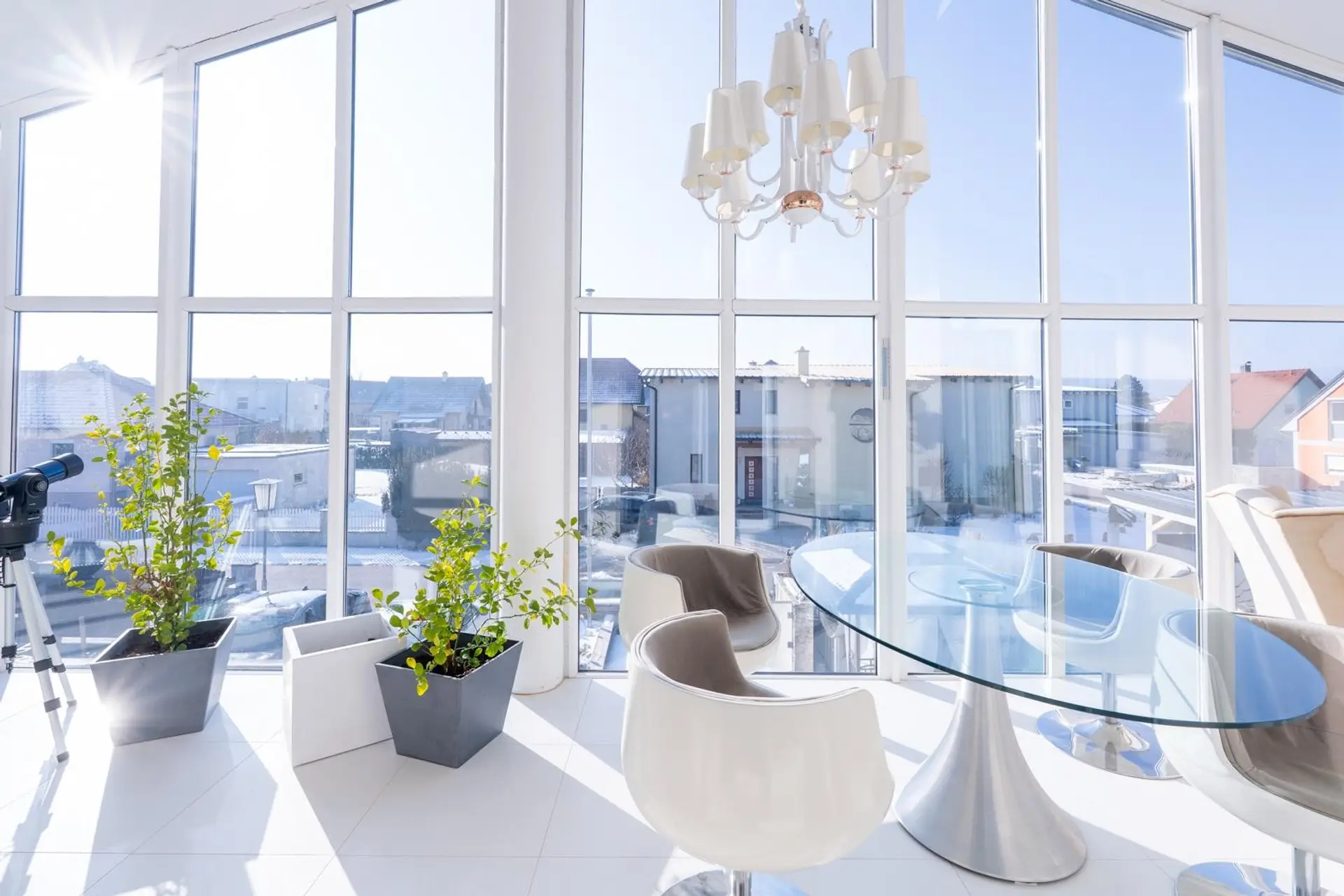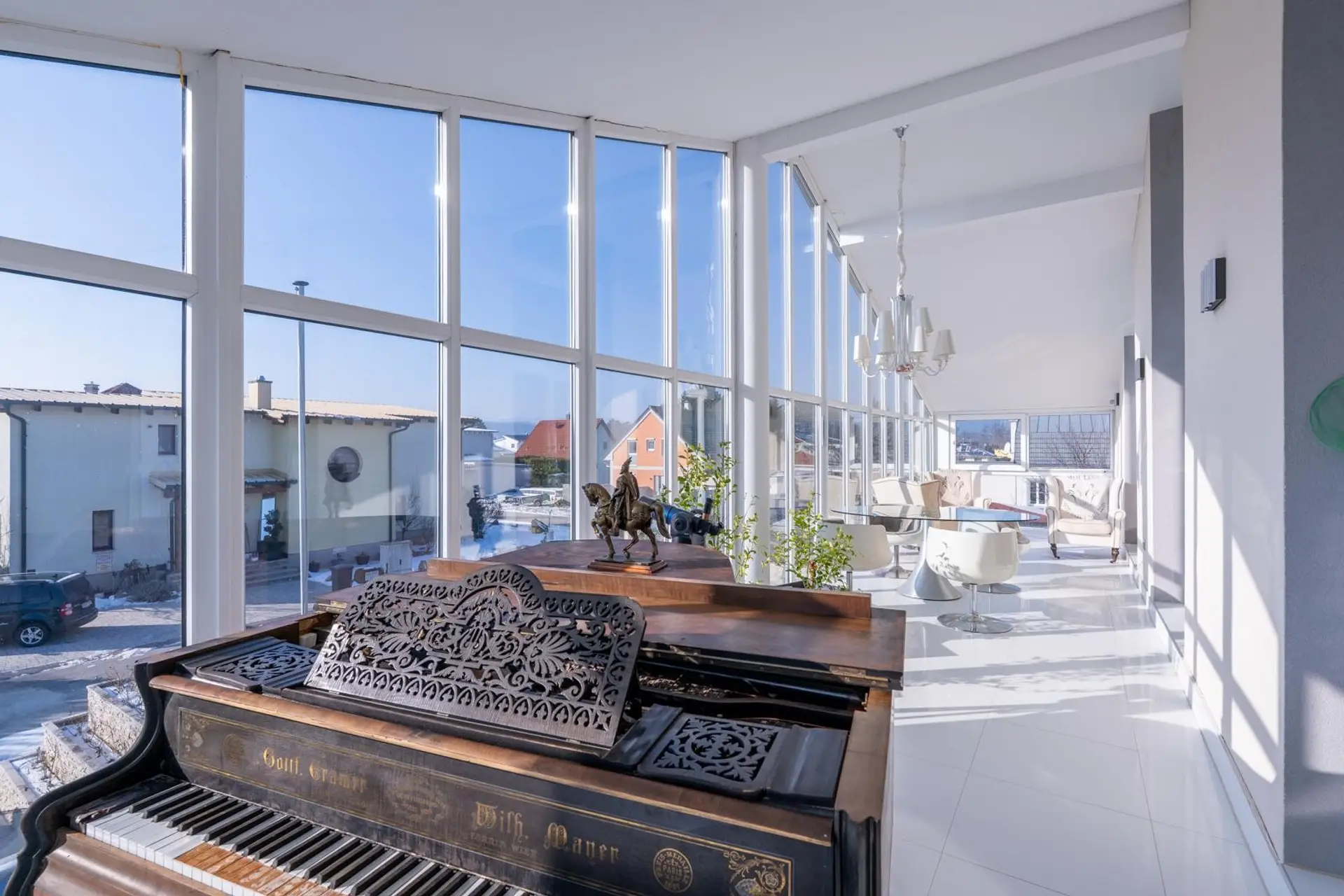 Straßenseitig öffnet sich ein verglaster Balkon (Wintergarten), während gartenseitig eine weitere Terrasse über den Wintergarten zugänglich ist – perfekte Orte für Ruhe, Ausblick und Entspannung.