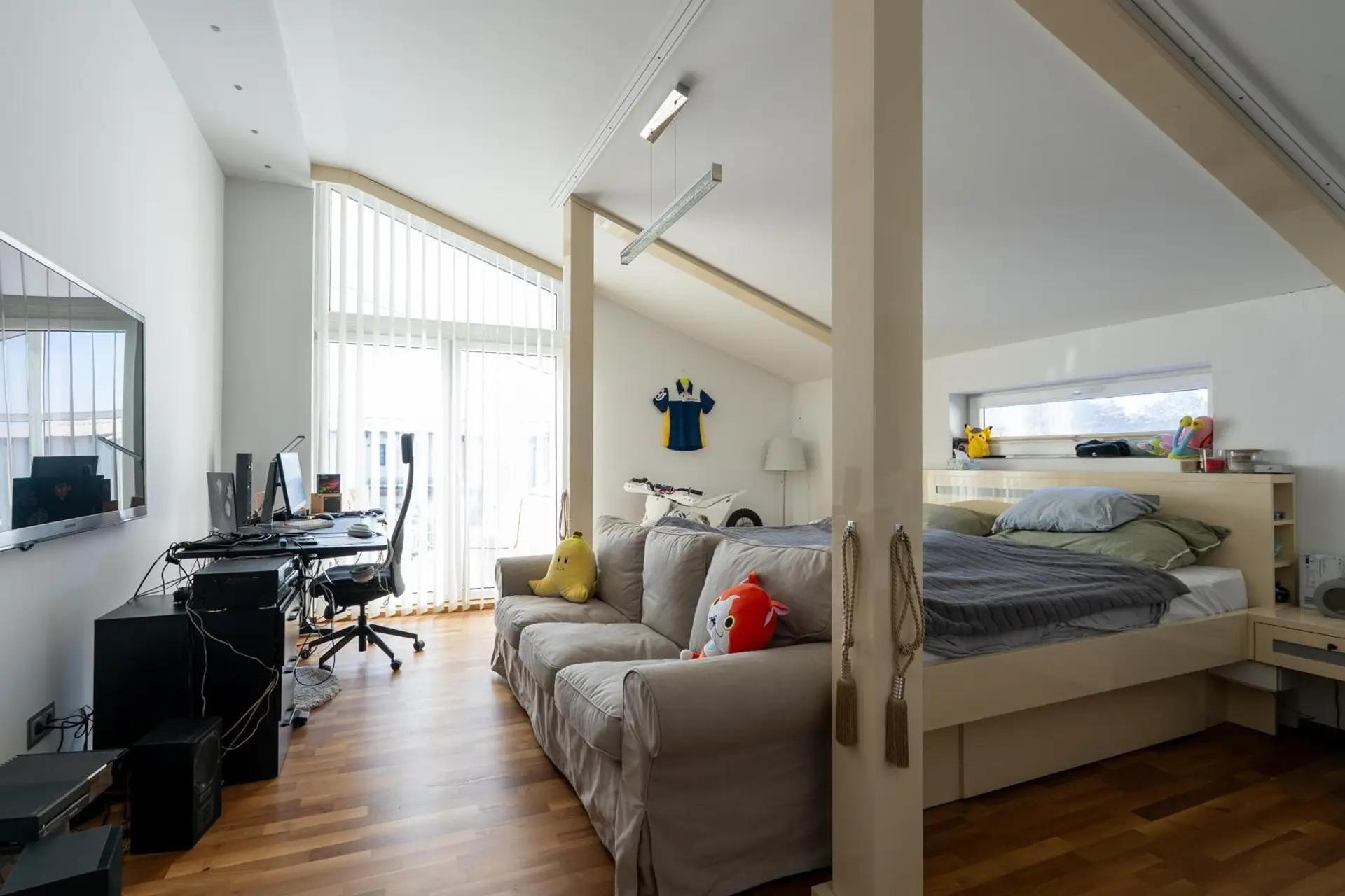 Das Dachgeschoss ist dem privaten Wohnen gewidmet und überzeugt durch Großzügigkeit und Komfort: