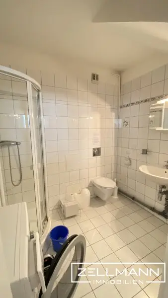 Badezimmer mit Waschmaschinen Anschluss und WC