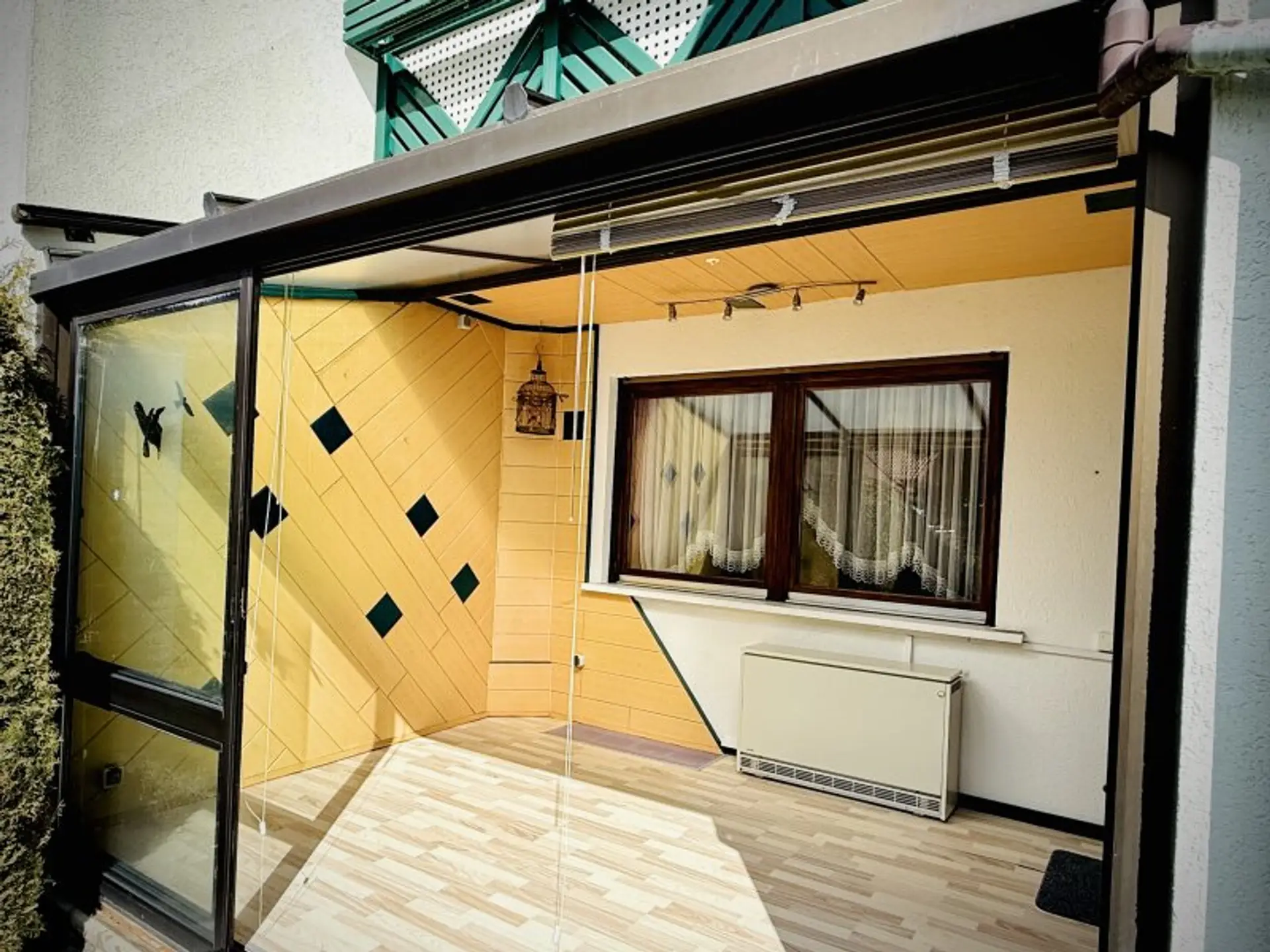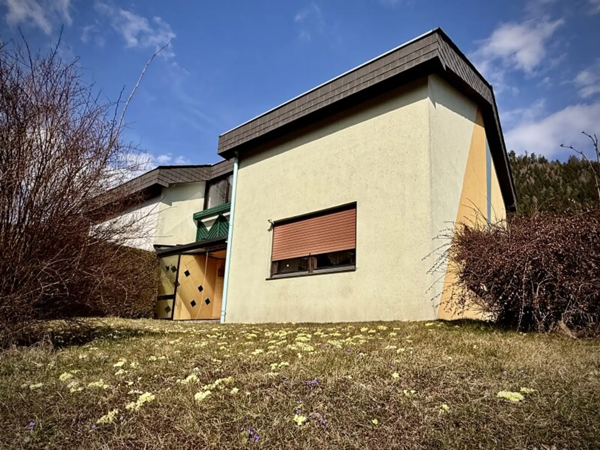 Durch die rundum laufende Gartenfläche wäre es einfach, eine Luftwärmepumpe einzubauen oder die Heizung auf Infrarotpanele umzubauen. Der Installation von Solarpnaeelen steht ebenfalls nichts im Wege.