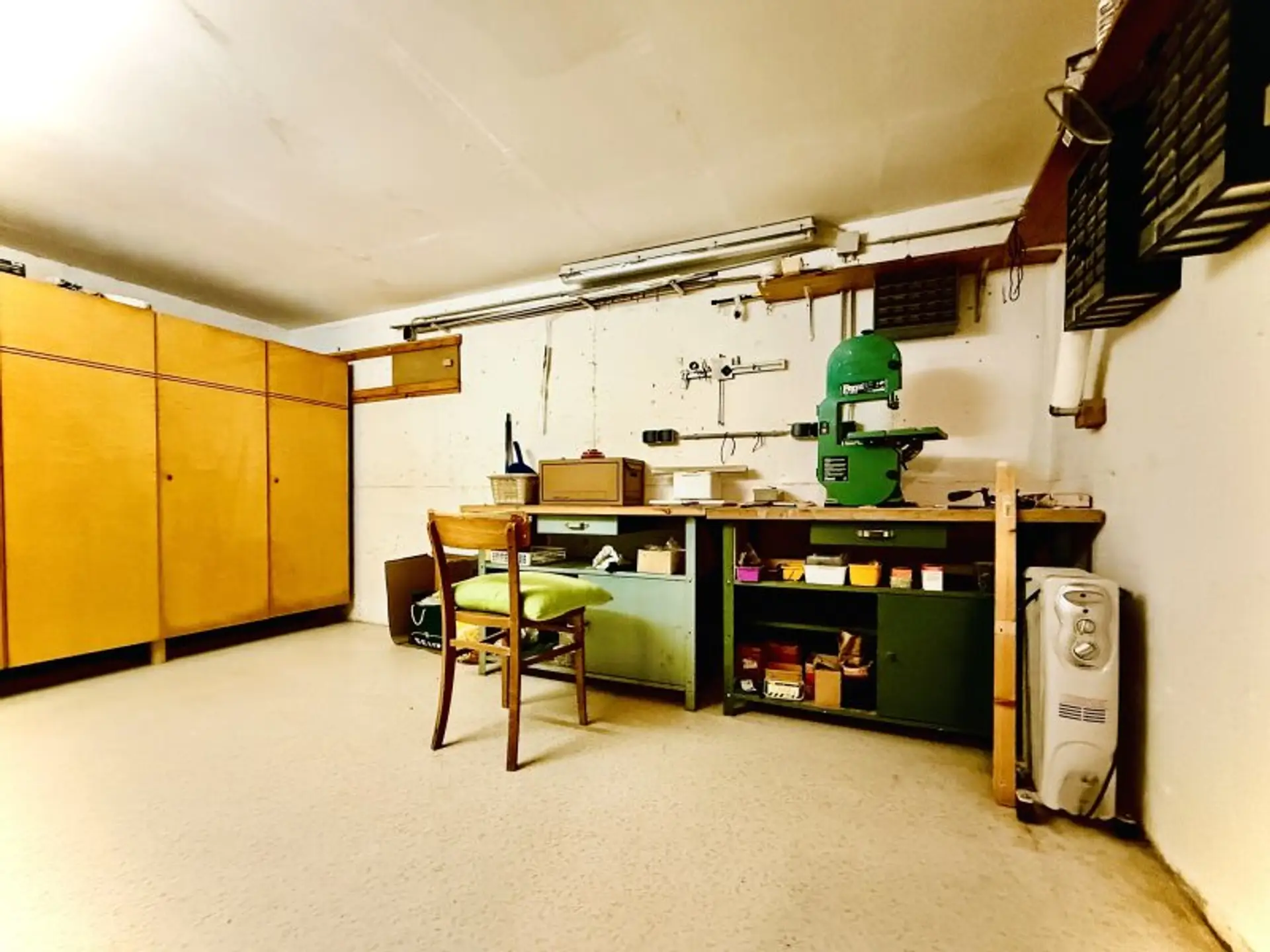 Der bei Errichtung verpflichtend errichtete Schutzraum wird derzeit als Werkstatt genutzt und eröffnet zusätzliche Nutzungsmöglichkeiten.