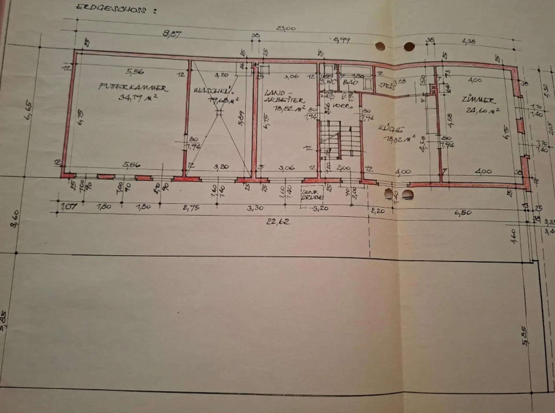 Der Hof umfasst zwei Wohnbereiche, mehrere Wirtschafts- und Nebenräume, eine großzügige Maschinenhalle/Garage sowie einen kleinen Stall.
