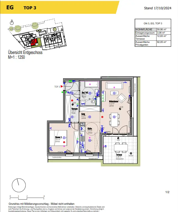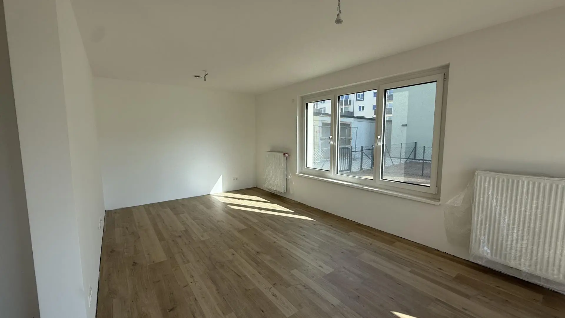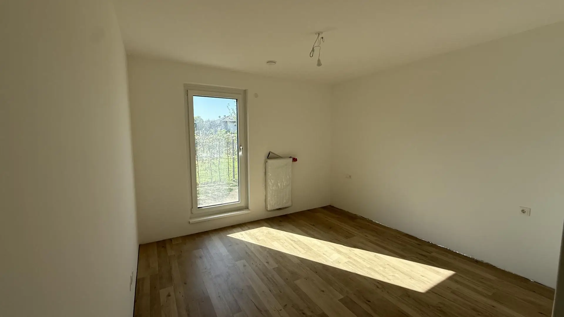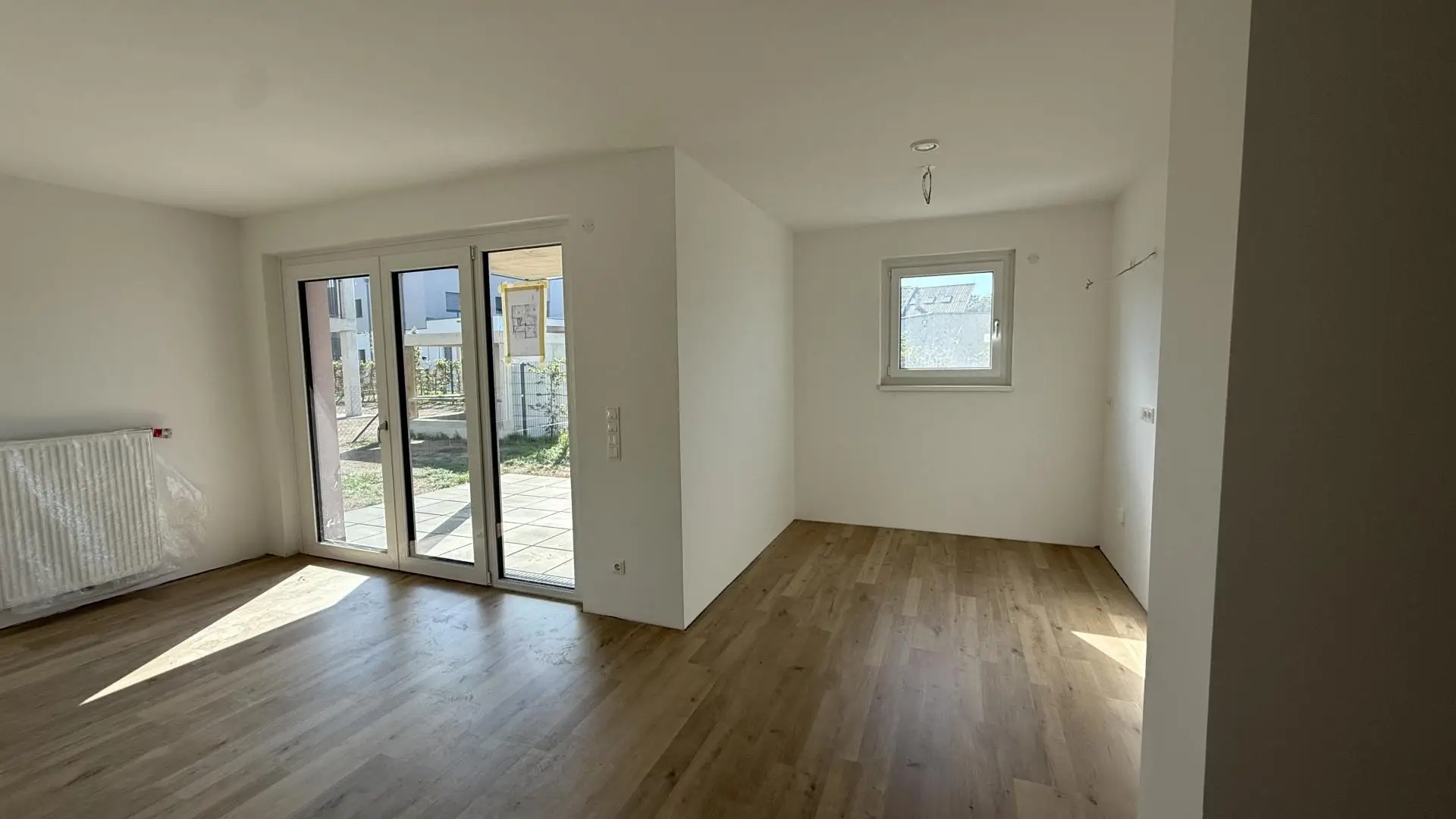 Auf rund 60 m² Wohnfläche bietet diese 2-Zimmer-Wohnung ein Wohnzimmer, Küche und Schlafzimmer. Die Terrasse mit über 12 m² und der angrenzende Garten mit rund 92 m² laden zu entspannten Stunden im Freien ein.