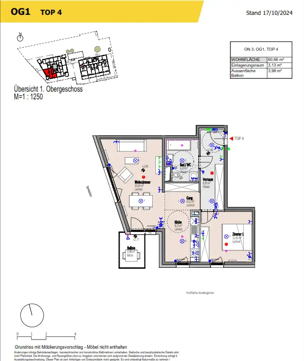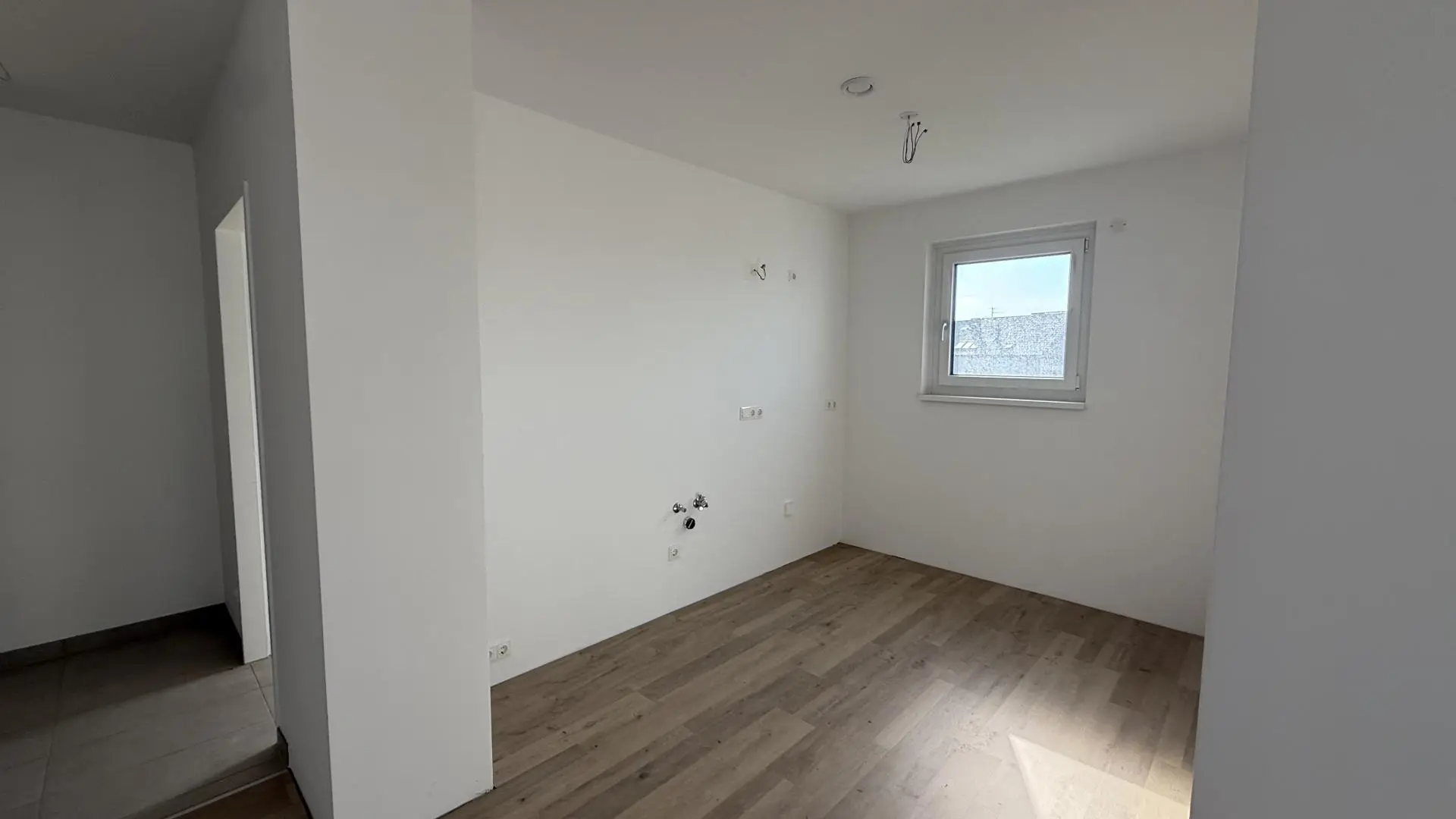 Mit rund 61 m² Wohnfläche, Wohnzimmer, Küche und Schlafzimmer überzeugt diese 2-Zimmer-Wohnung durch ihre klare Raumaufteilung. Der kompakte Balkon mit knapp 4 m² bietet zusätzlichen Freiraum im 1. Obergeschoss.