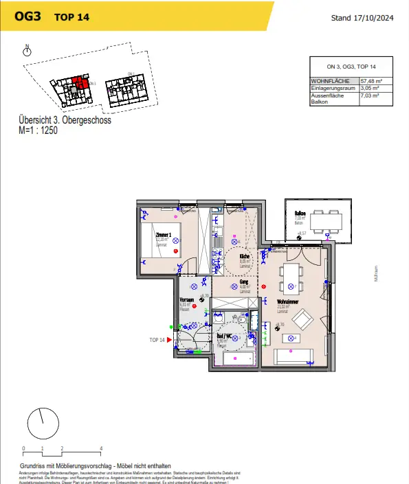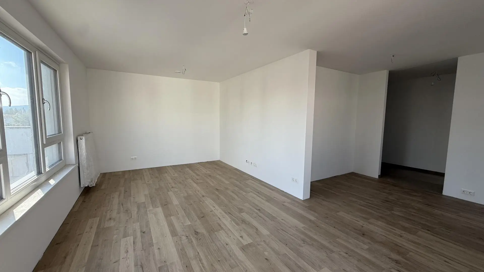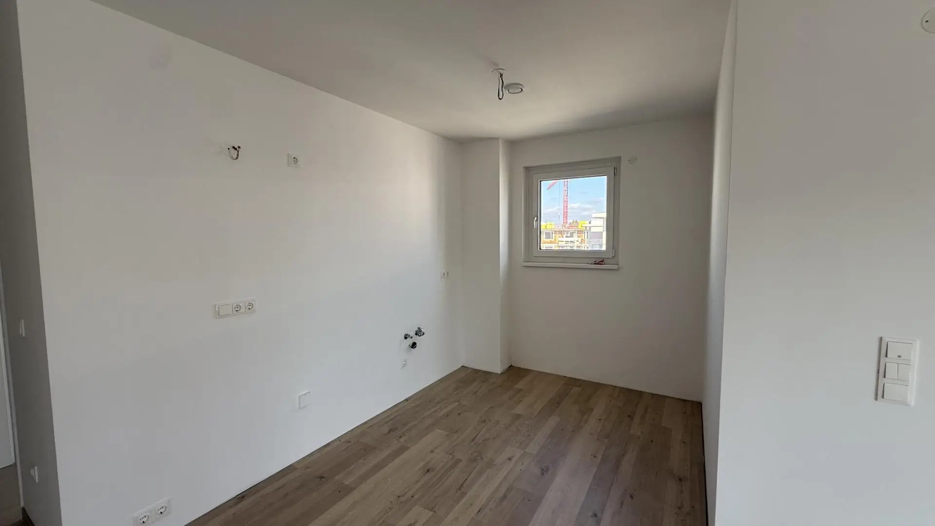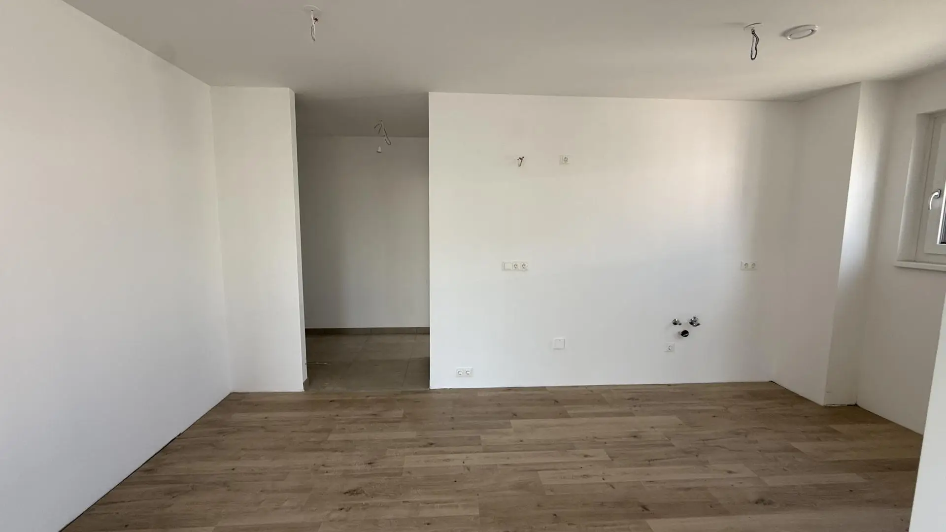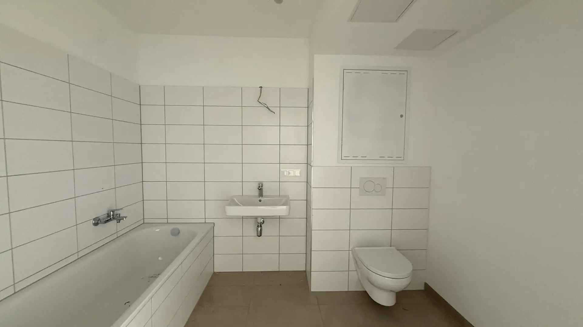 Auf rund 58 m² Wohnfläche bietet diese 2-Zimmer-Wohnung Wohnzimmer, Küche und Schlafzimmer. Der Balkon mit gut 7 m² schafft zusätzlichen Freiraum im Dachgeschoss.