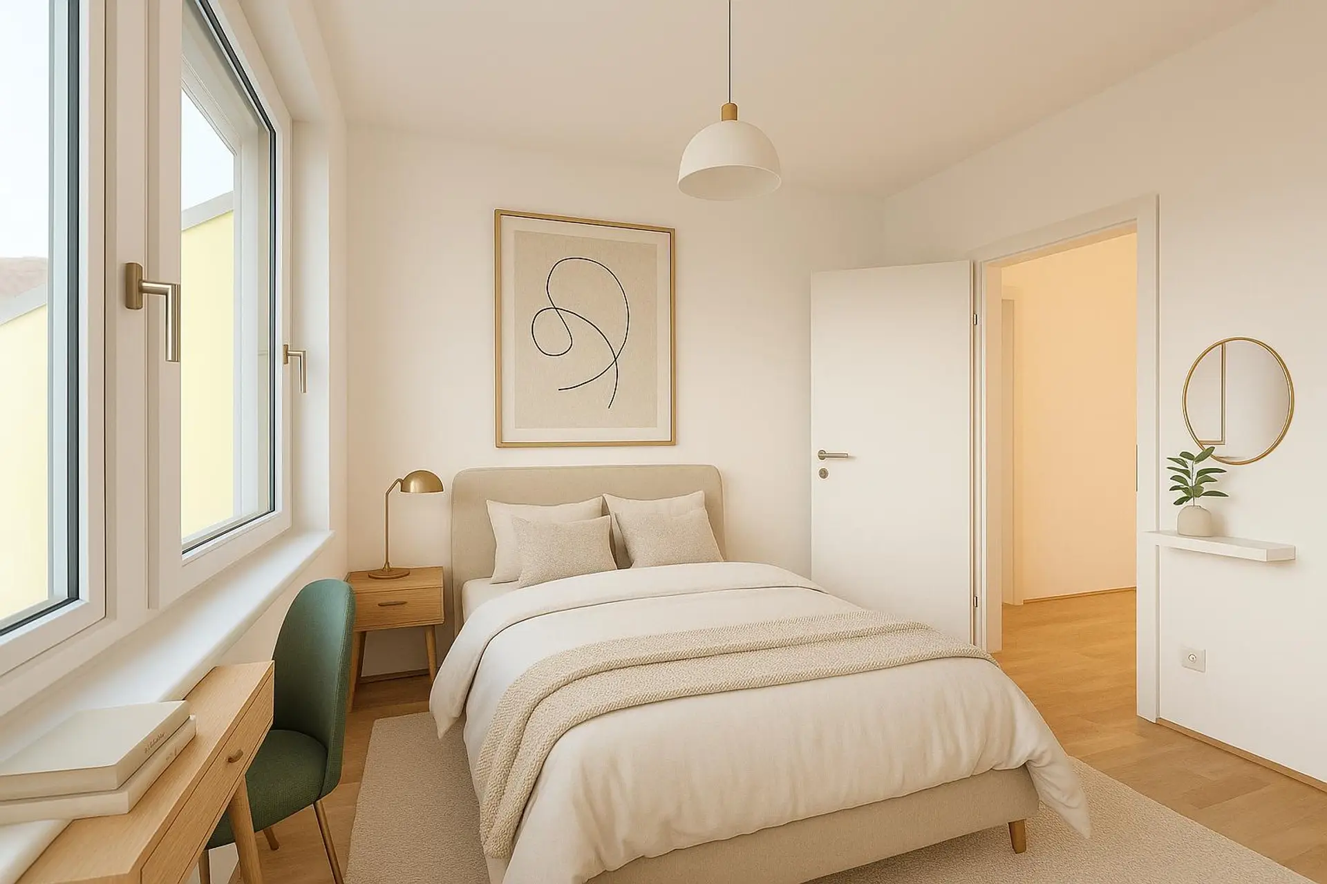 Zwei helle, ruhige Zimmer bieten Freiraum für Ihre individuellen Bedürfnisse – als Schlafzimmer, Kinderzimmer, Homeoffice oder Gästezimmer. Vielseitig und wandelbar, so wie das Leben selbst.