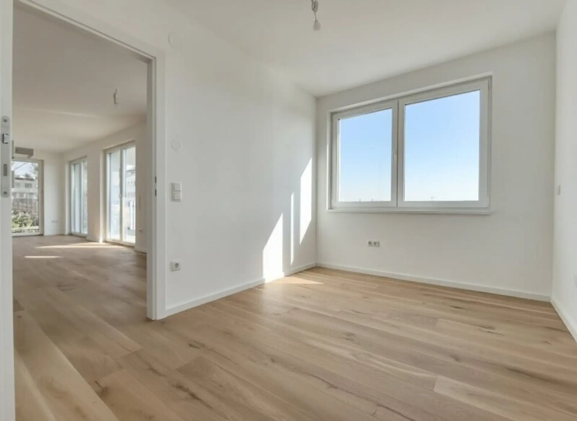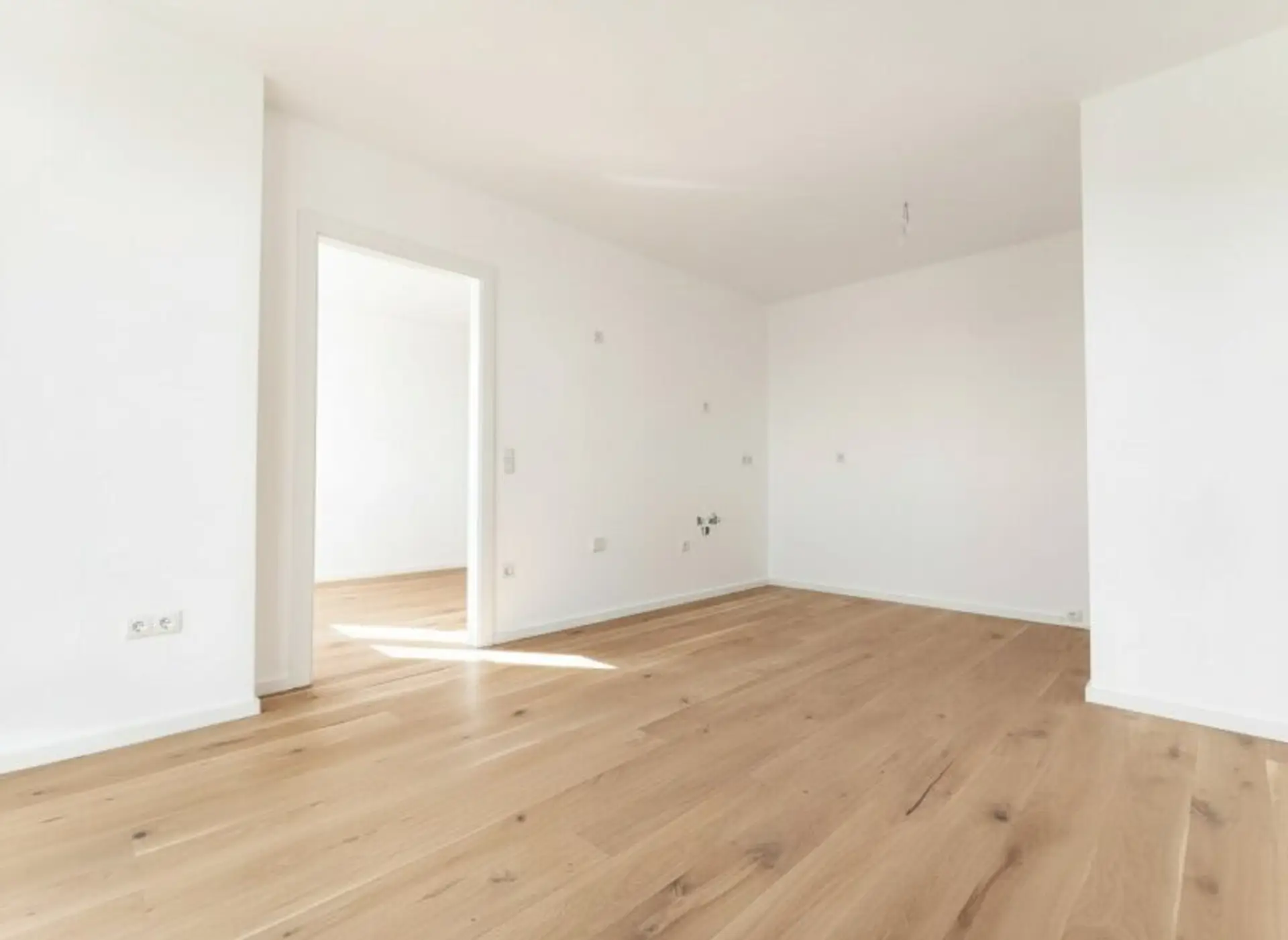 3-Schicht-Eichenparkett mit ca. 2,5 mm Nutzschicht, elegante Sockelleisten sowie großformatige keramische Fliesen in den Nassräumen unterstreichen den hochwertigen Charakter der Wohnungen.