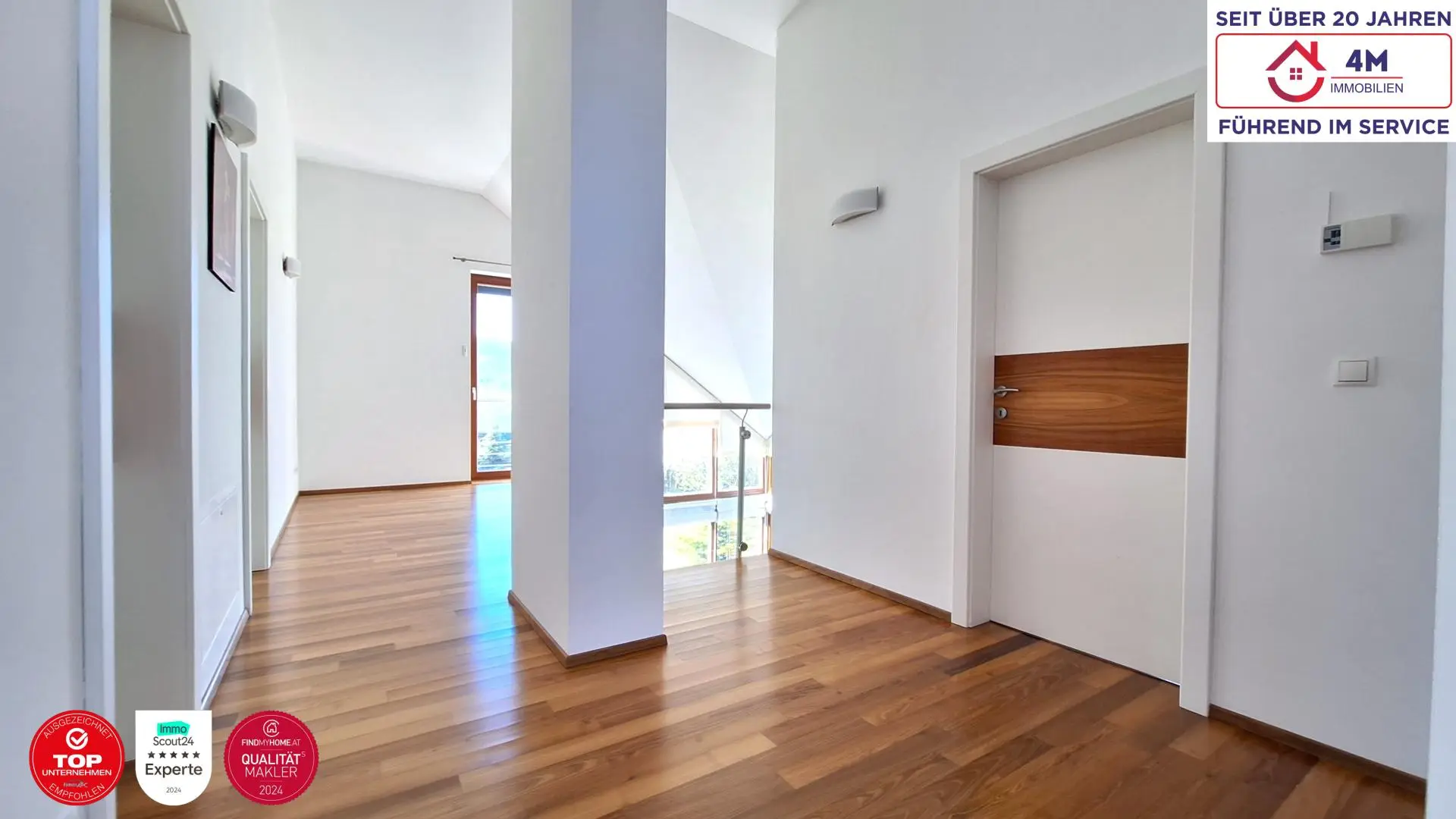 Die offene Galerie und lichtdurchflutete Räume verleihen dem Haus eine Atmosphäre von Großzügigkeit und Freiheit. Hochwertige Materialien, edle Ausstattung und feinste Details schaffen ein luxuriöses Wohngefühl.