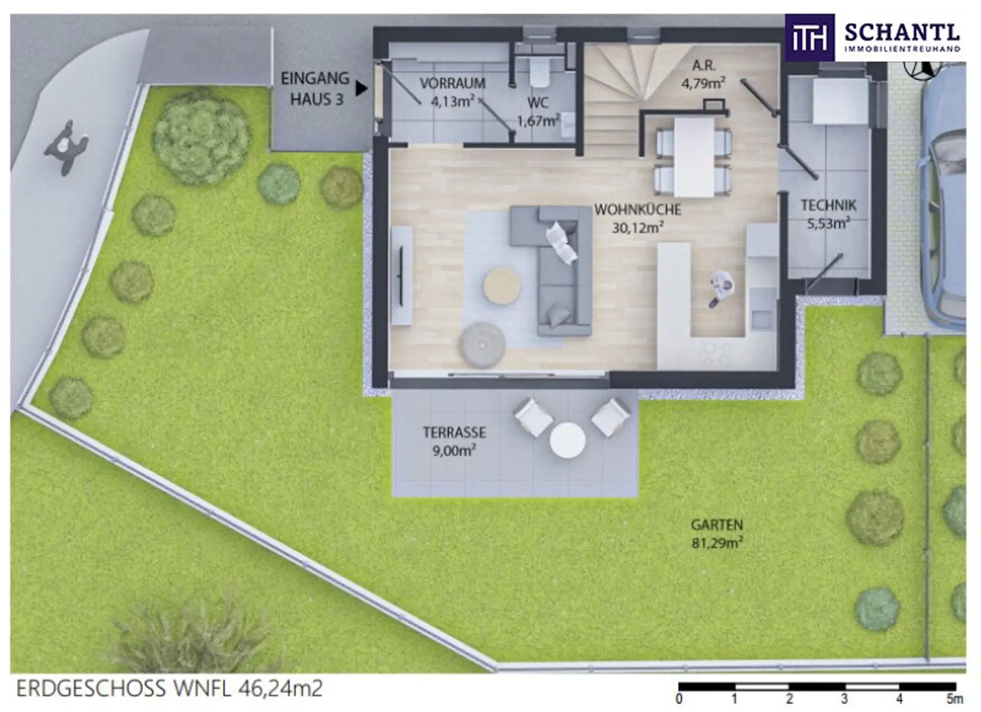 Jedes der Häuser verfügt über eine großzügige Wohnfläche zwischen 131 und 138m², ideal für Familien oder Paare, die Wert auf Raum und Gemütlichkeit legen. Genießen Sie die Privatsphäre Ihres eigenen Gartens, der zwischen 60 und 81m² groß ist, sowie die sonnigen Terrassen mit 16 oder 17m², die zum Entspannen und Genießen einladen. Ein Stellplatz pro Haus inklusive!