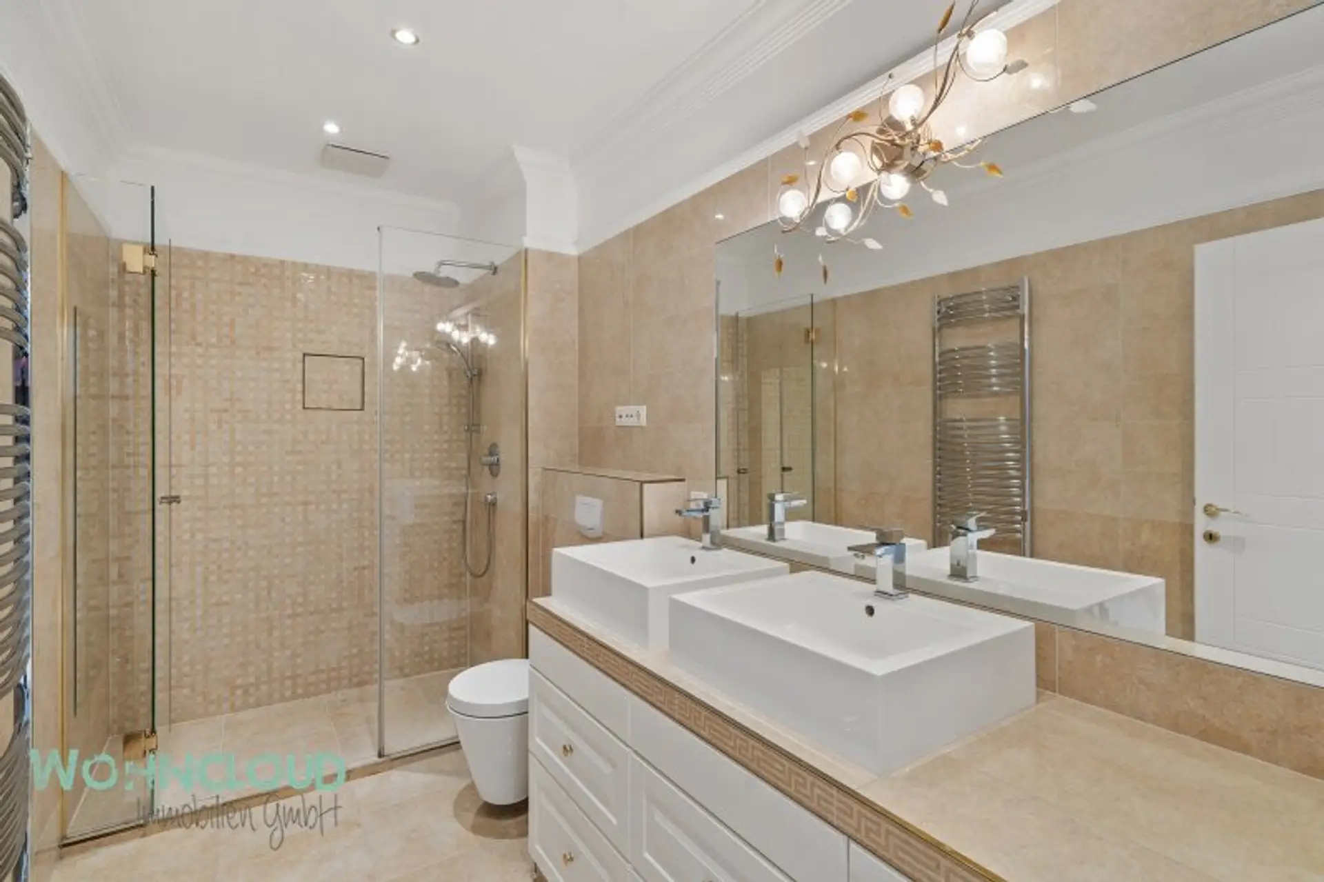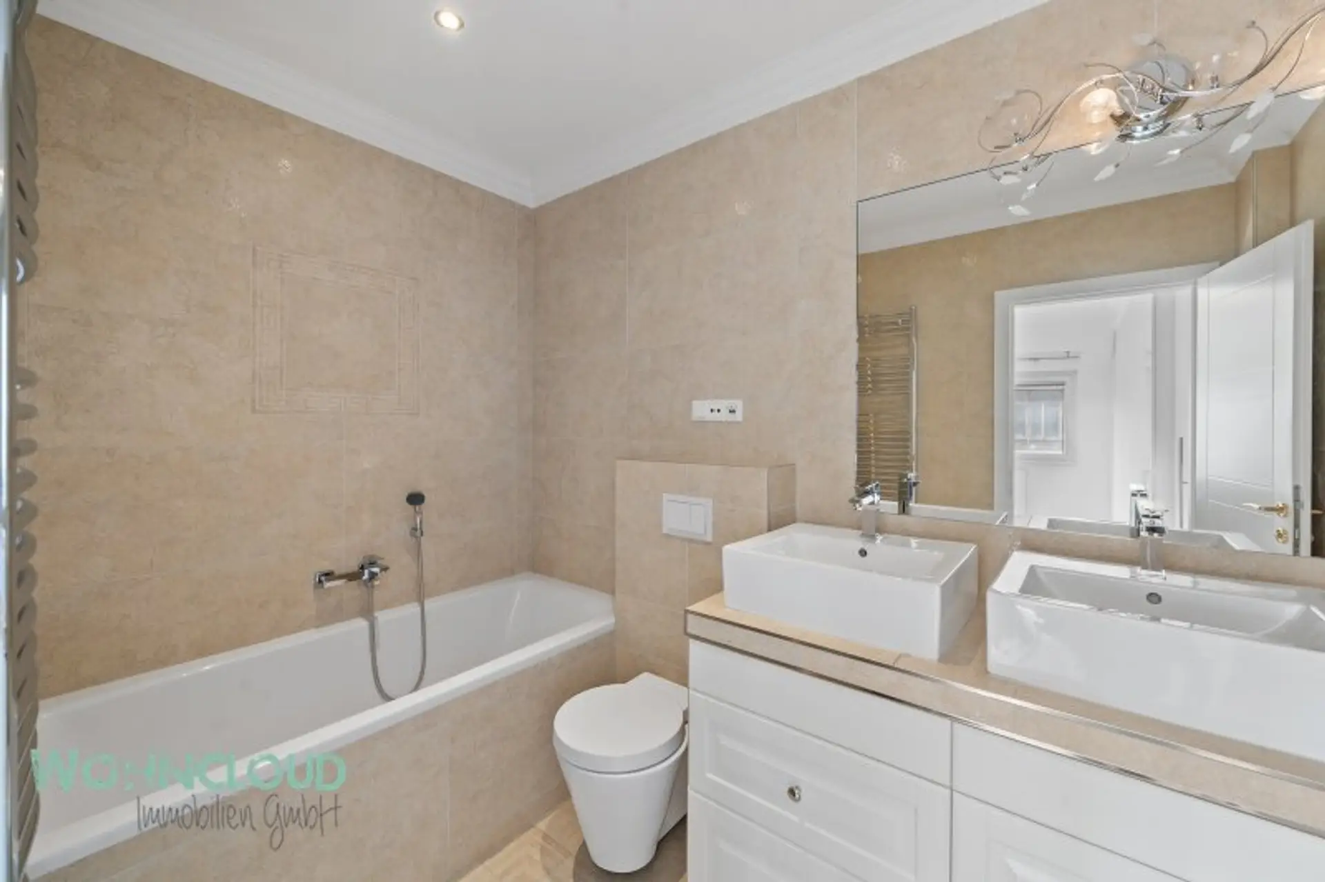 Zwei stilvolle Badezimmer, eines mit Badewanne, eines mit Walkin Dusche, drei separate WCs und hochwertige Materialien wie Parkett und elegante Fliesen sorgen für ein Wohnniveau, das Komfort und Ästhetik selbstverständlich verbindet.