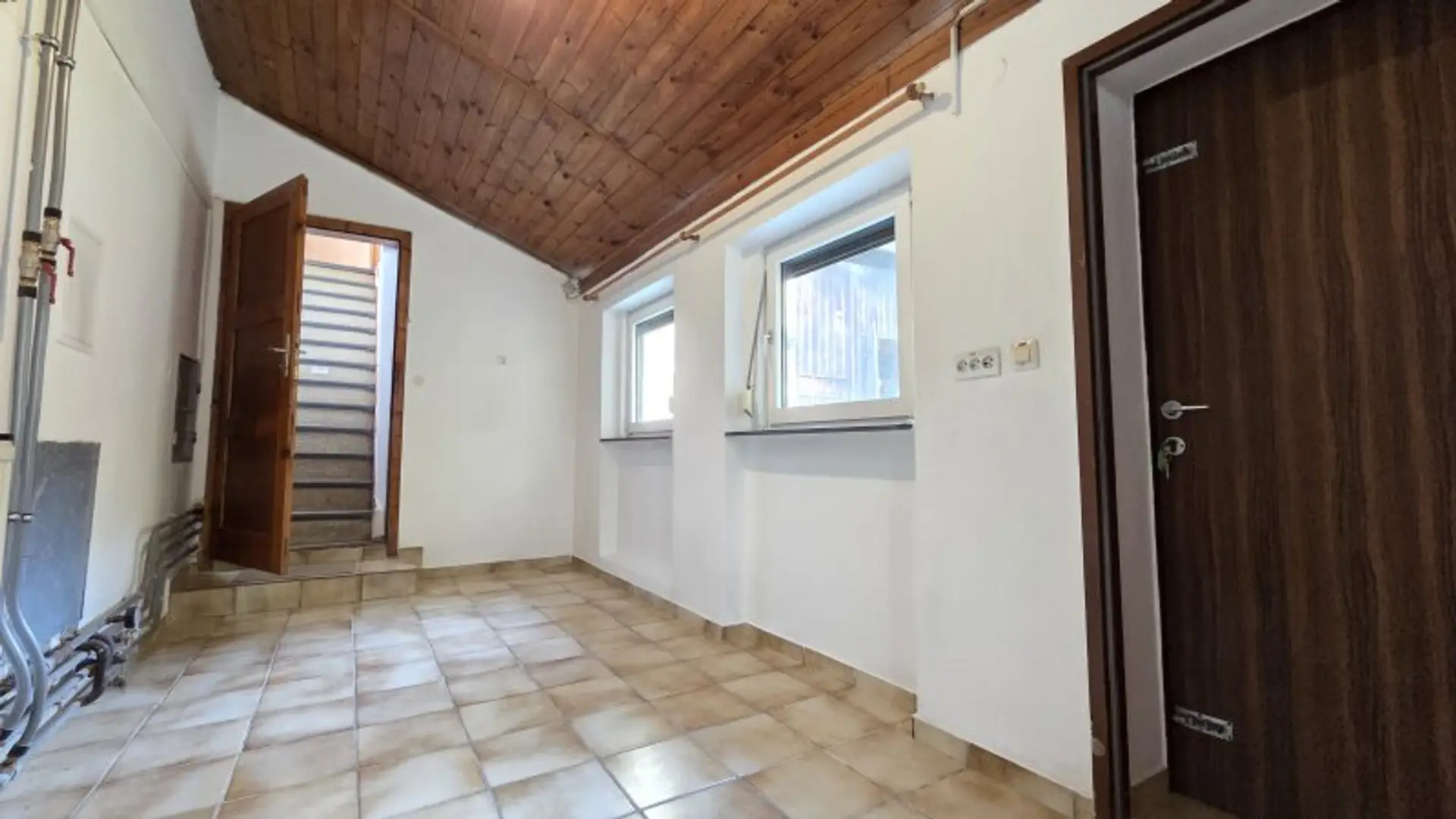 Im Windfang angekommen steht Ihnen geradeaus die Küche, linkerhand das Wohnzimmer, Schlafzimmer und ein weiteres Zimmer zur Verfügung. Rechterhand gelangen Sie ins Bad sowie WC und weiters in einen weiteren Vorraum von welchen Sie in das Obergeschoß gelangen.