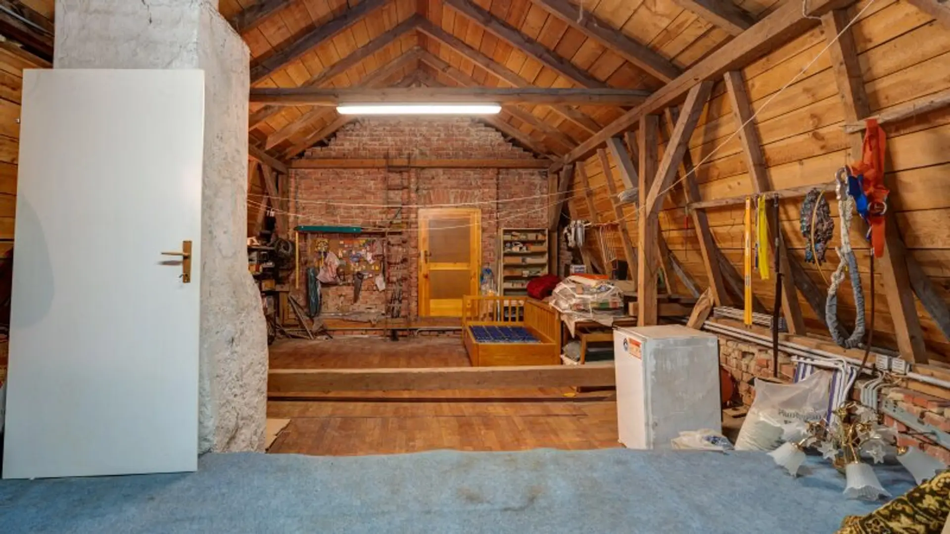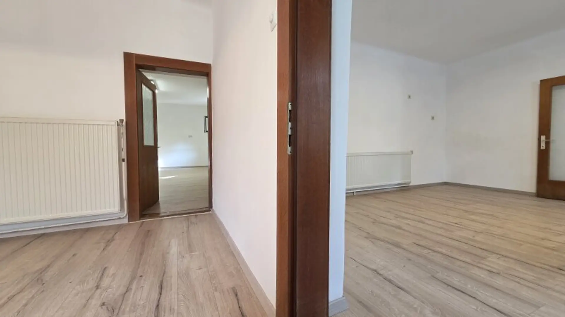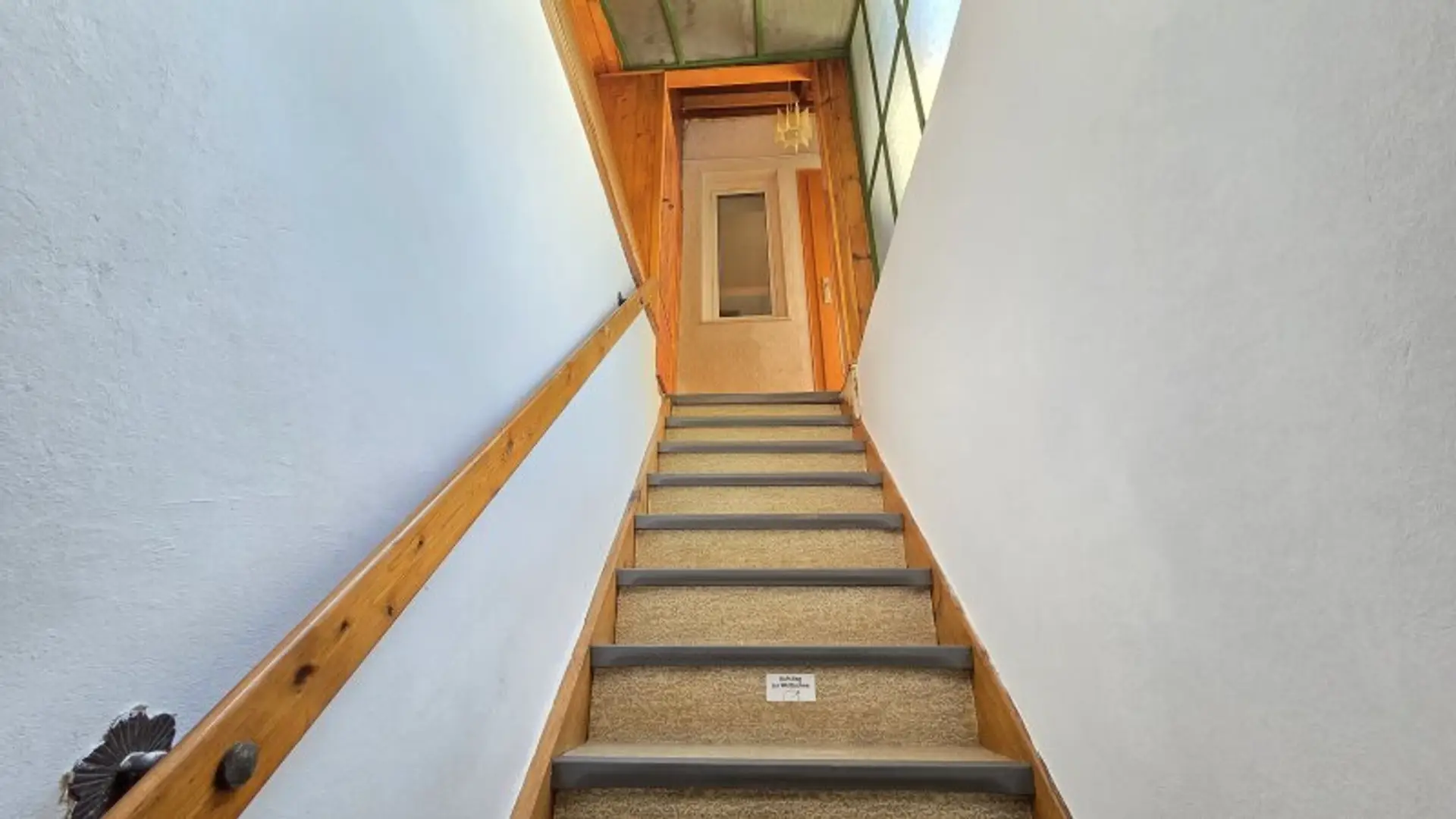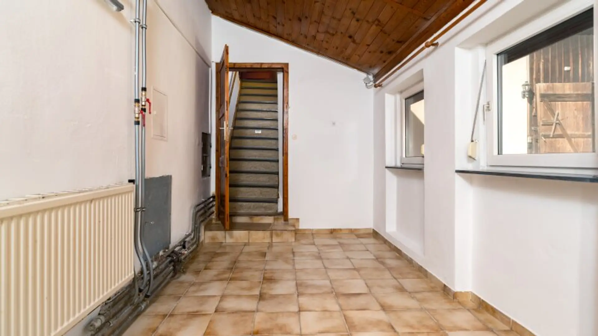 Im Obergeschoß steht Ihnen linkerhand ein großer Raum (zum ausbauen) zur Verfügung. Geradeaus gelangen Sie in ein weiteres Zimmer von welchen Sie links und rechts in jeweils ein Zimmer gelangen.