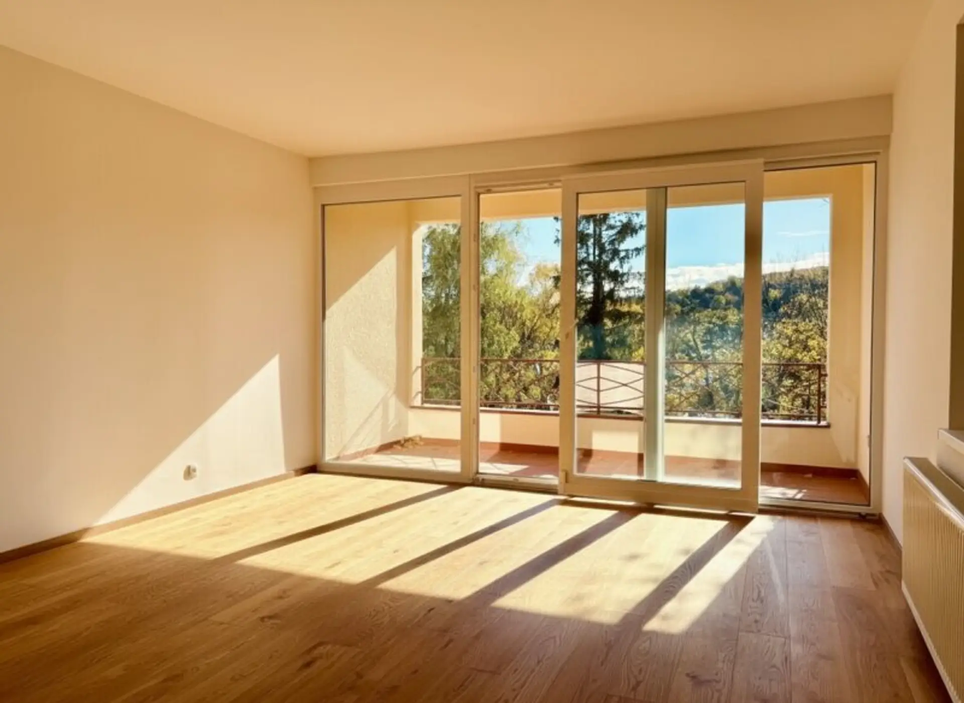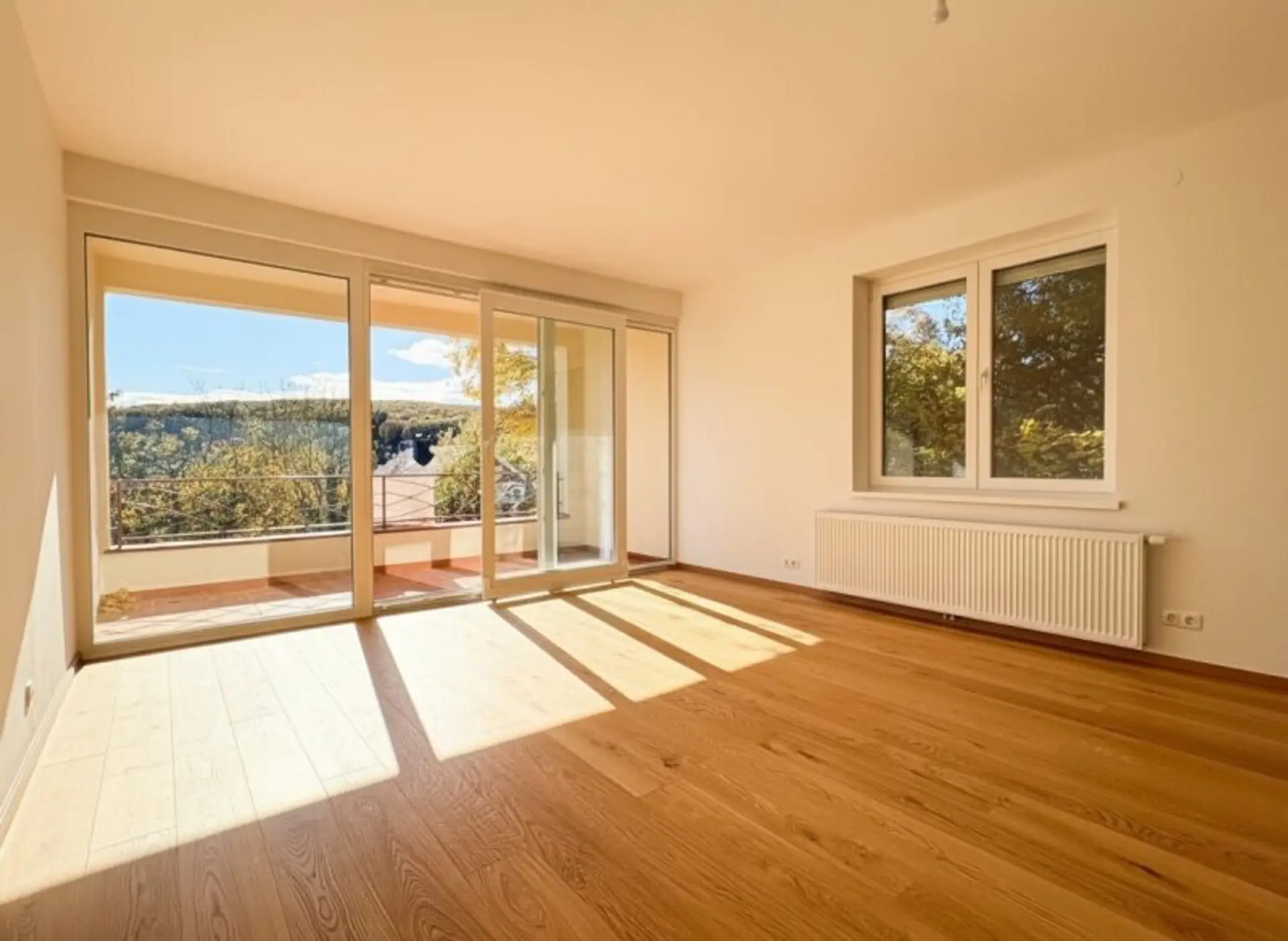 Die frisch sanierte Wohnung in der 2. Etage (ohne Lift) einer gepflegten familiären Wohnanlage mit 2 Häusern und insgesamt nur 12 Wohneinheiten verfügt über knapp 124m² Wohnfläche inklusive einer südseitigen Loggia mit ca. 8m² und zuzüglich eines nordseitigen Balkons mit rund 9m². Vom großzügigen Vorzimmer sind alle Räume zentral begehbar. Der große Wohnsalon wurde mit einer maßangefertigten Tischlerküche ausgestattet, die sich in zeitlos elegantem Weiß präsentiert und mit qualitativ hochwertigen Markengeräten von Bosch versehen. Die Wohnung wurde generalsaniert, neben einem wunderschönen Weitzer-Parkettboden in Eiche wurden moderne dreifach verglaste Fenster mit elektrischen Außenjalousien montiert. Die große Glasfront im einladenden Wohnsalon mit Weitblick gibt einem sofort das Gefühl, mit Familie und Freund:innen Quality Time verbringen zu wollen. Drei Schlafzimmer bieten Platz für alle, wobei man das größte der Zimmer auch noch einmal in der Mitte abteilen könnte. Ein neues Badezimmer in elegantem Weiß mit großformatigen Fliesen sowie eine separate Gäste-Toilette und ein Abstellraum mit Waschmaschinenanschluss komplettieren den Grundriss.