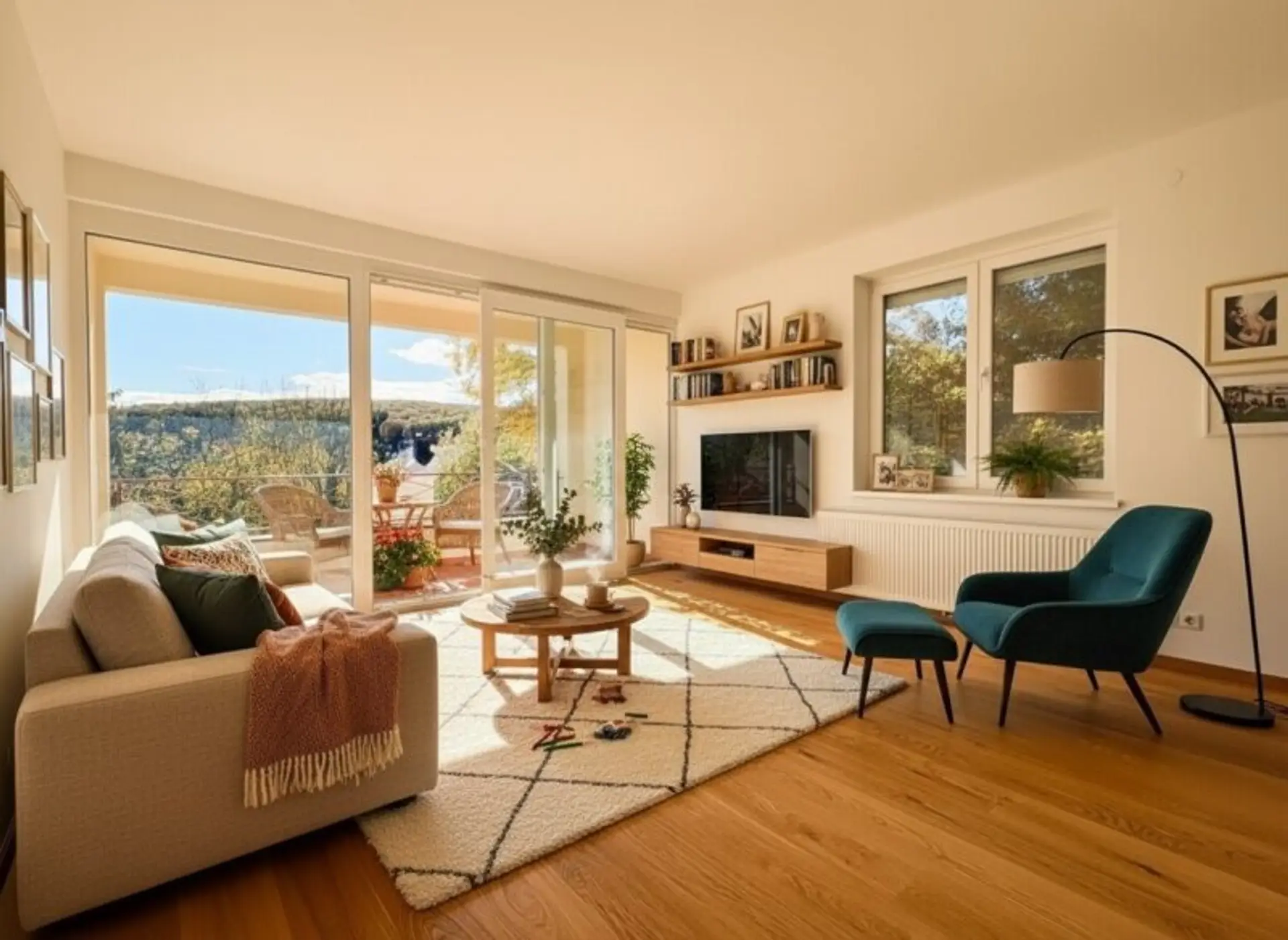 _Hinweis:_ zur Illustration und Inspiration wurde das Titelbild virtuell mit KI eingerichtet. Die Wohnung wird bis auf die maßangefertigte Tischlerküche unmöbliert verkauft.