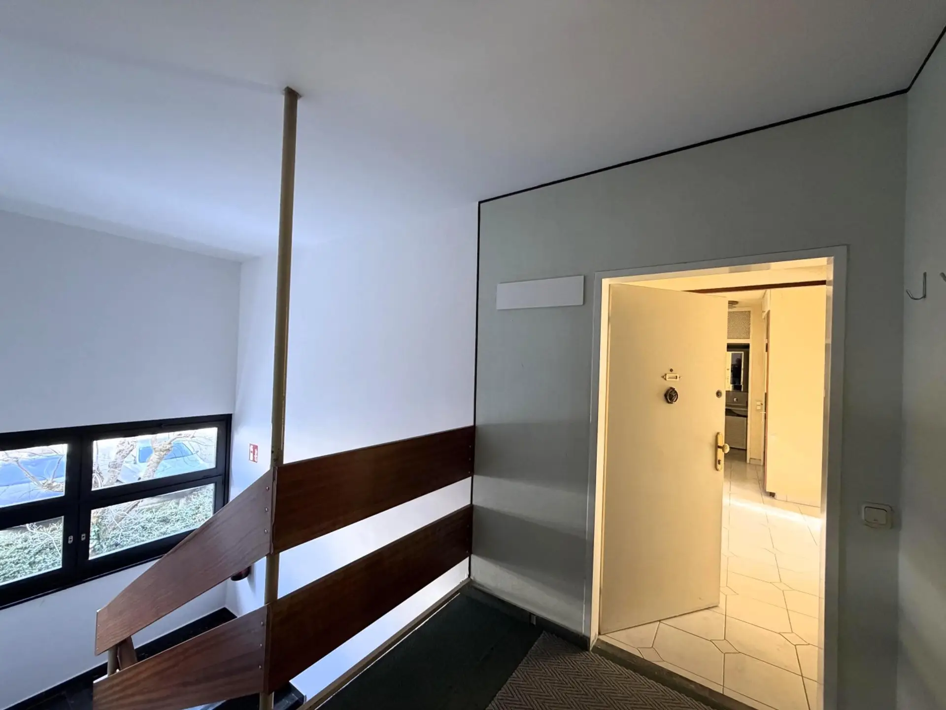 Between Staircase 2, where the apartment is located, and the building opposite lies a landscaped green area which, despite the sloping terrain, offers a cozy seating area for relaxation. This green space feels like a small park belonging to the complex and significantly enhances the recreational value.