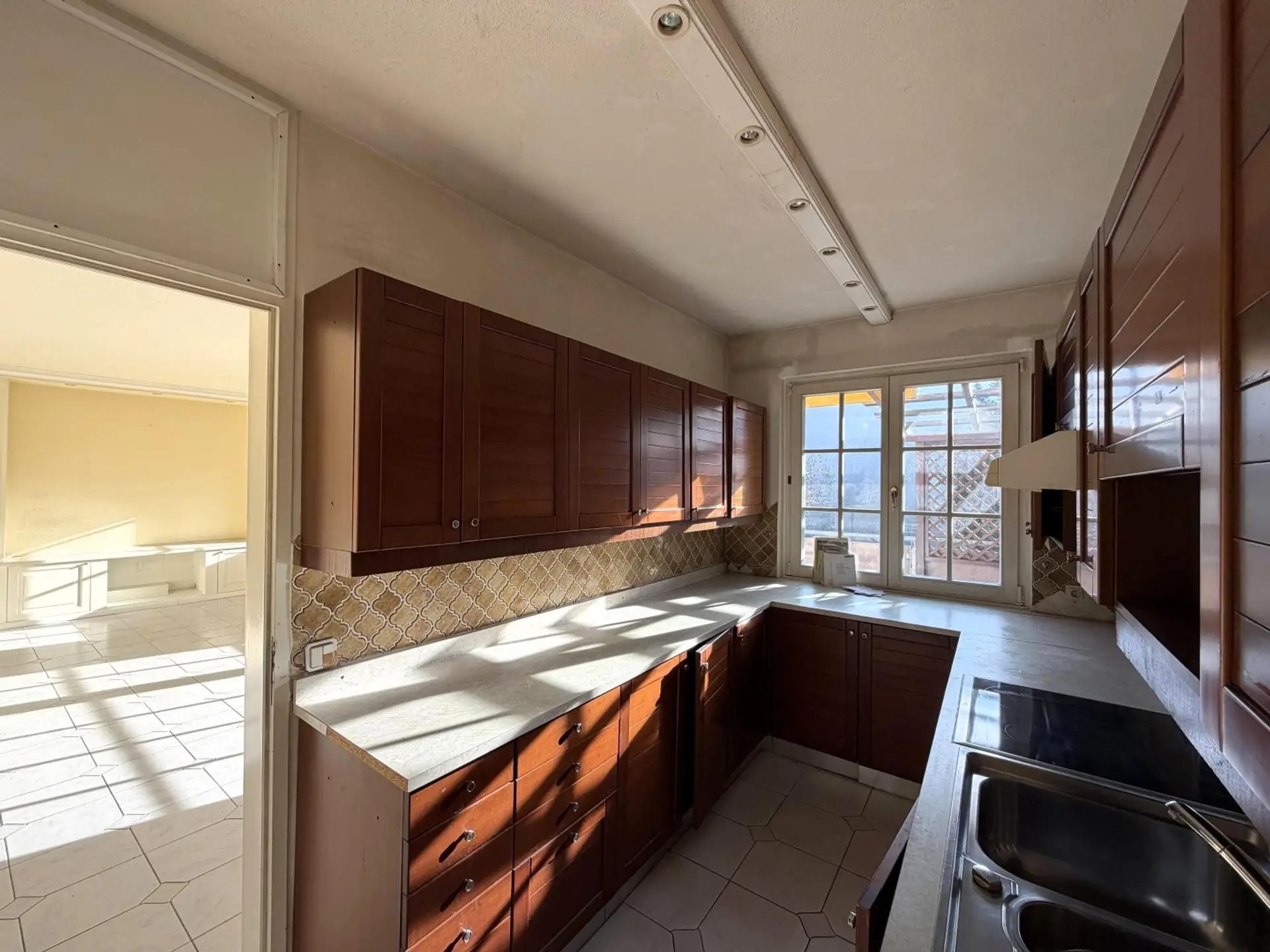 In a residential building constructed in 1975, a bright, refurbishment-needing 3-room top-floor apartment with a south-facing terrace and an associated parking space suitable for separate condominium ownership is now for sale.