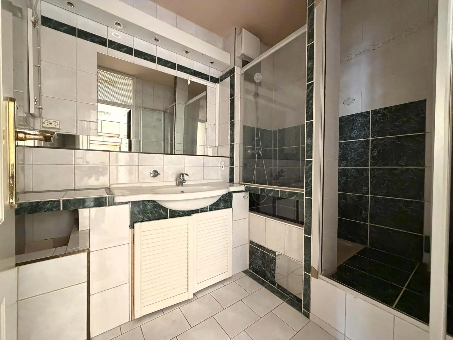 The bathroom appears to be from the original construction period of the building. Notable, for example, is a step of approx. 30 cm leading up into the shower. This clearly offers potential for a contemporary redesign.