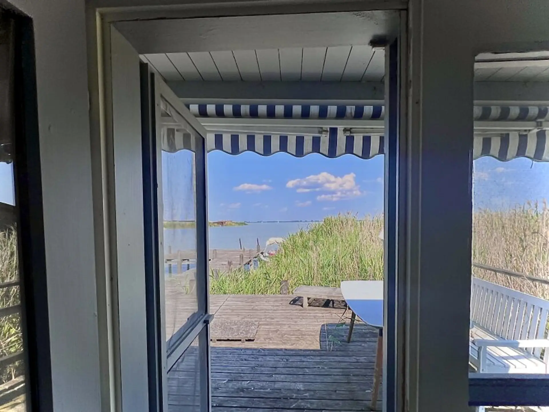 Ein breiter Steg vor der Hütte erleichtert das Anlegen mit Booten. Sie können von dort direkt in den See eintauchen.