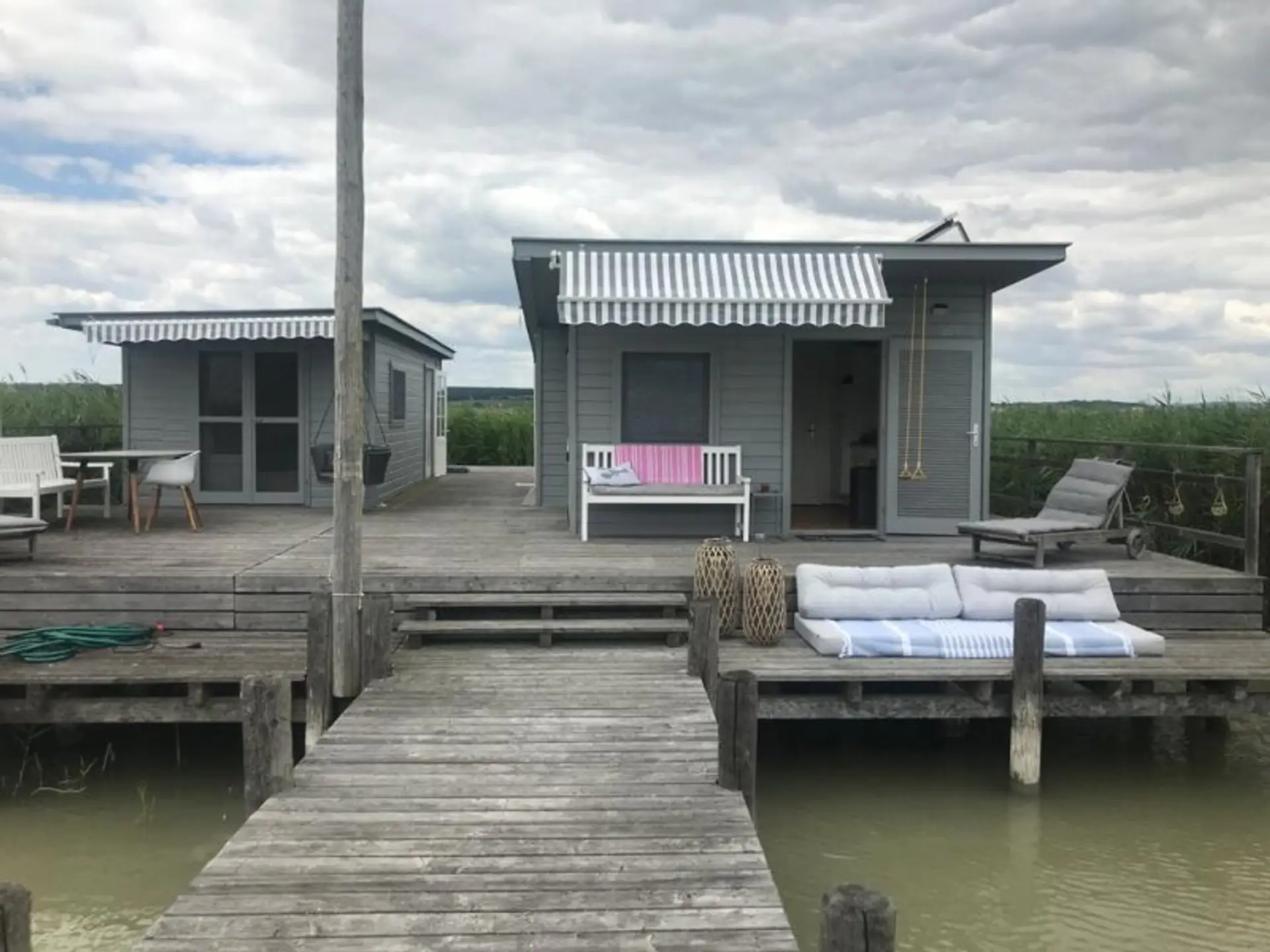 Auf der rund um die Hütten verlaufende Terrasse finden Sie für jedes Wind- und Sonnenwetter das richtige Platzerl zum Zurückziehen.
