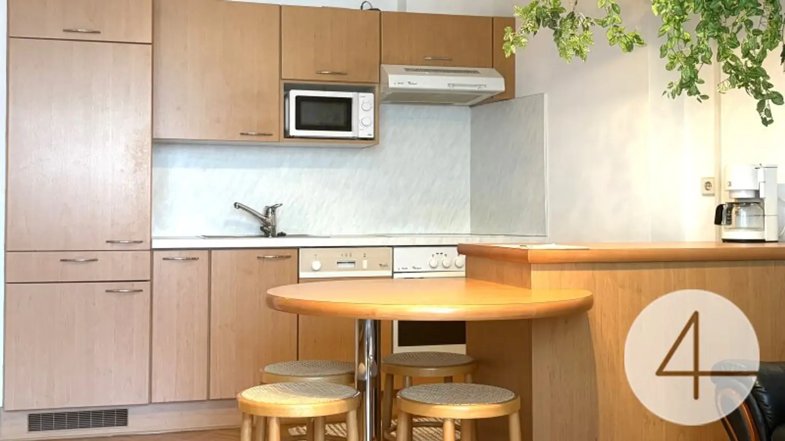 Die Wohnung ist exklusiv ausgestattet (Geschirrspüler, Waschmaschine, E-Herd, Mikrowelle, Kühlschrank) eingerichtet. Die Wohnung wird inklusive Küche und Mobiliar abgegeben.