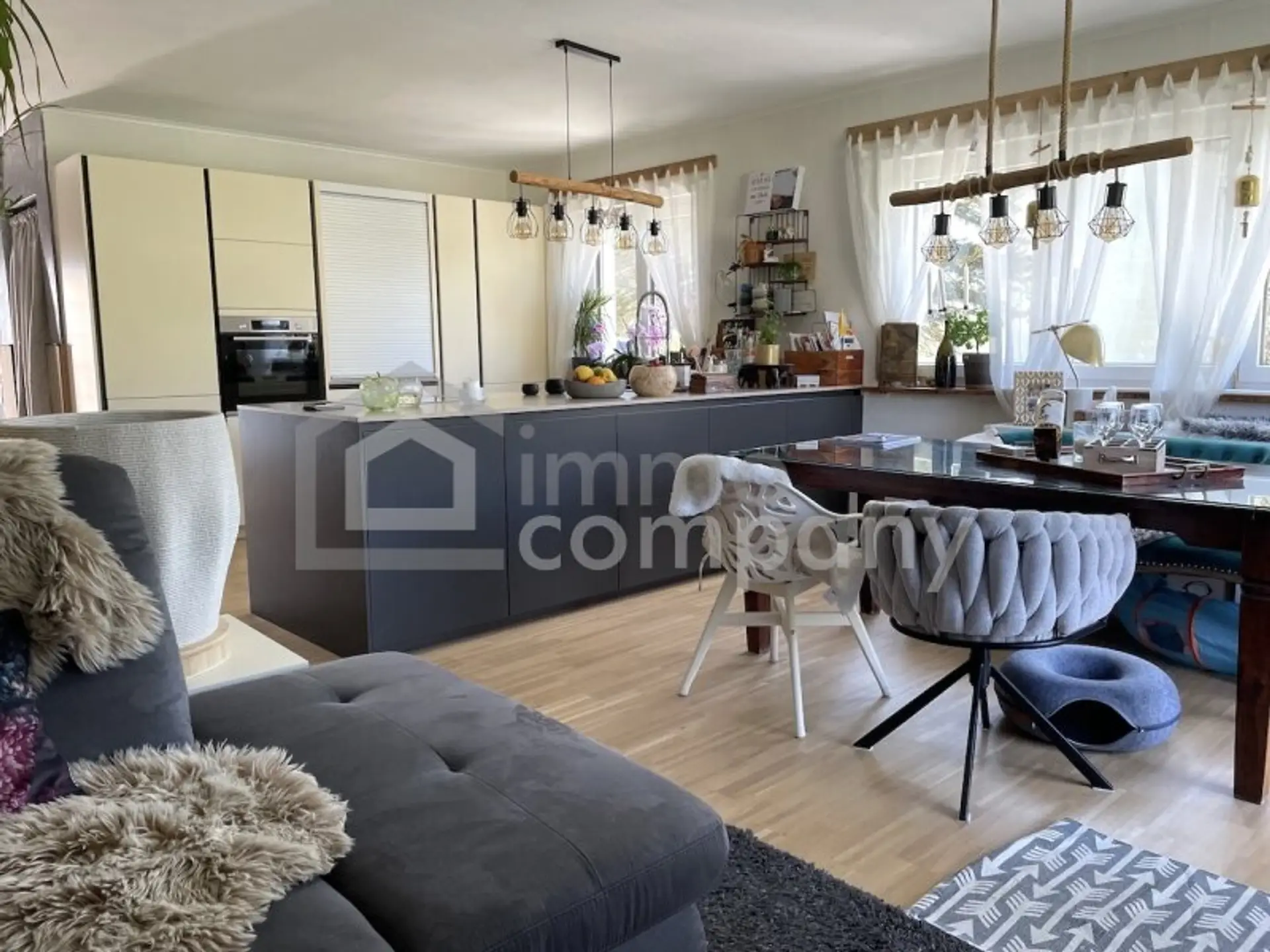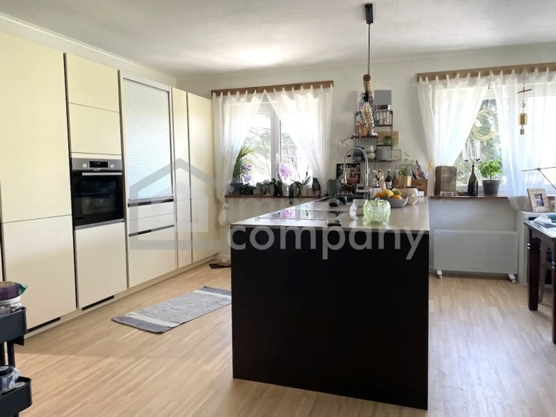 Der große Wohnbereich mit Küche und Essplatz bildet das Zentrum. Von dort geht es zur Terrasse und dem Garten, bzw. 2 weiteren Zimmern und dem Bad.