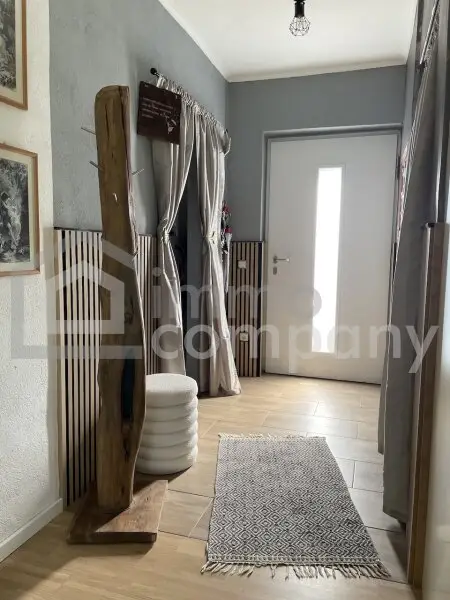 Zentral positioniert sorgt der Kamin für wohlige Wärme. Es gibt im Eingangsbereich den Wirtschafts- und einen weiteren Abstellraum.